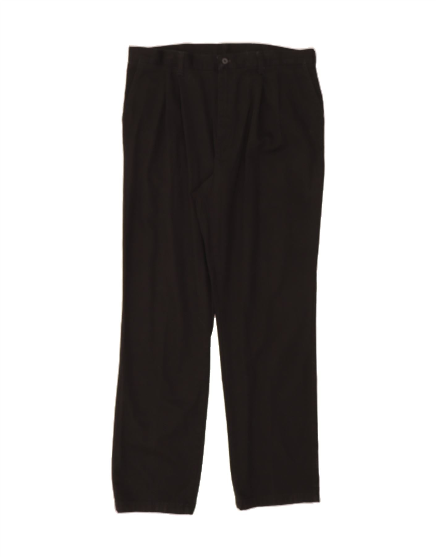 - AI Description: These pre-owned Wrangler chino trousers for men offer classic style and comfort. Crafted from 100% cotton, these black trousers feature a regular fit and a woven fabric. The design includes practical pockets and a secure button closure. Accented with a button detail, these trousers are labelled as size 38 X 34 and were made in Mexico. These trousers would make a versatile addition to any wardrobe.