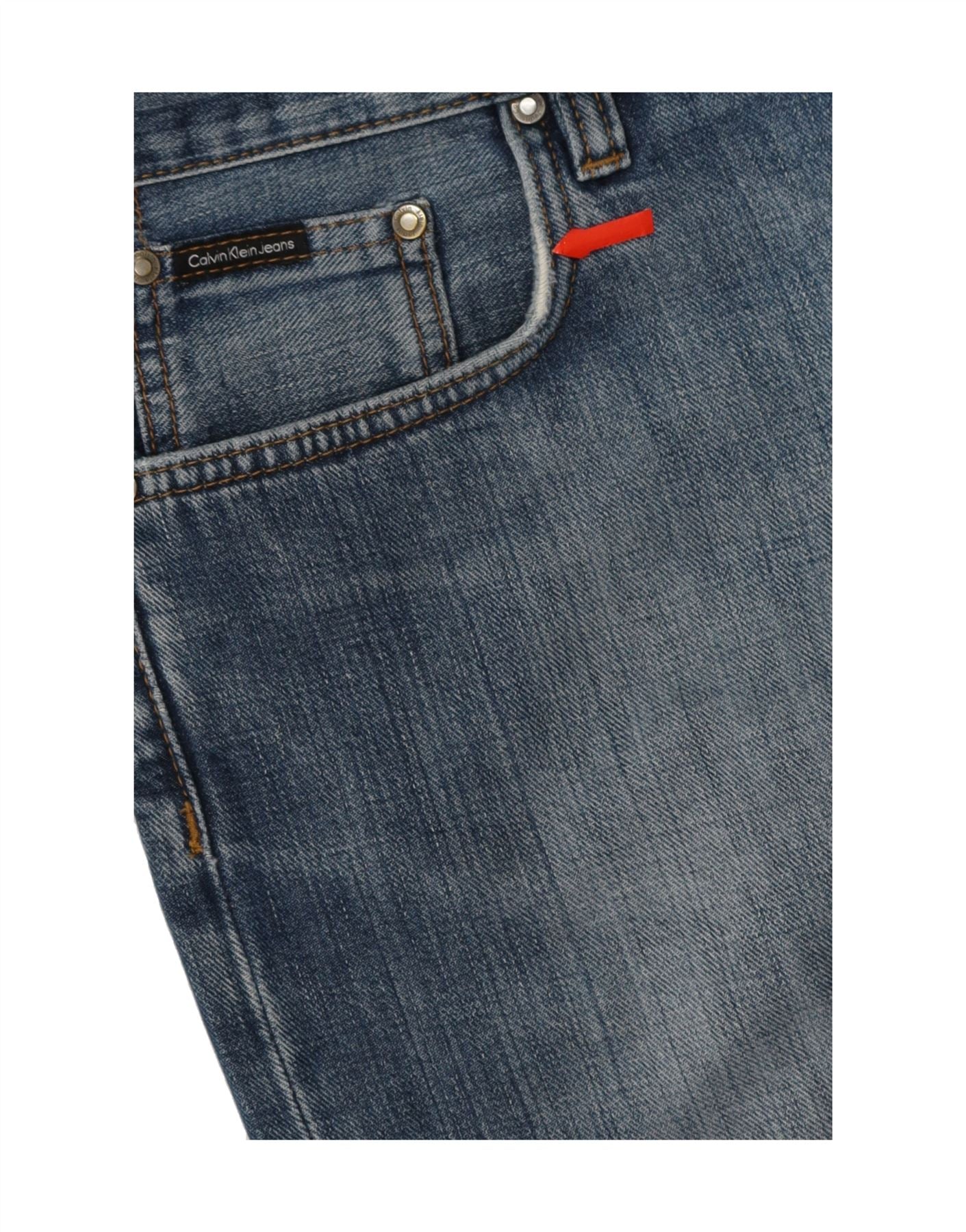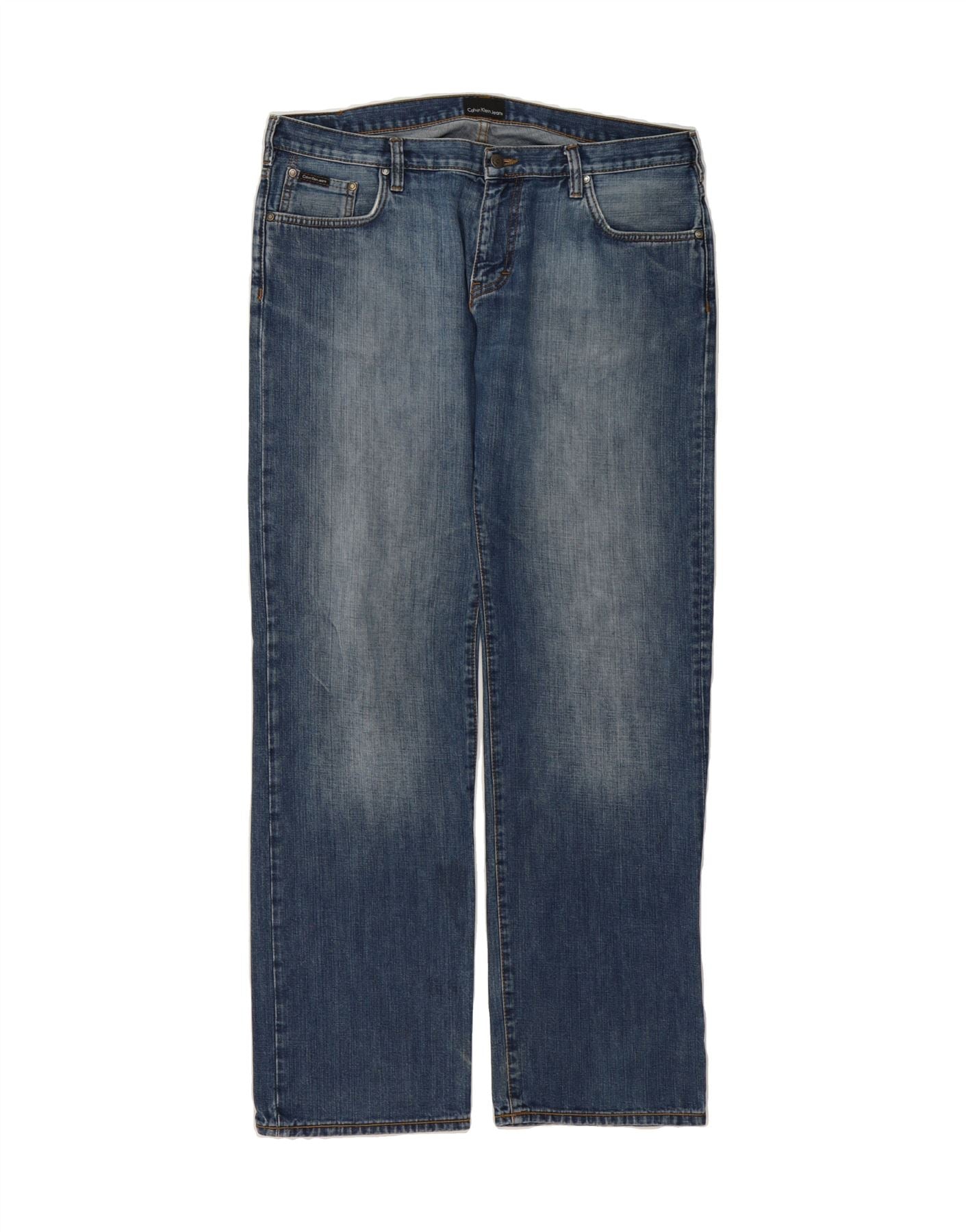 - AI Description: Classic Calvin Klein men's jeans in blue denim. These pre-owned jeans are in excellent condition but have minor discoloration in a faded area. The regular fit and button closure offer a comfortable, timeless style. Featuring practical pockets, these jeans are made from durable cotton and are perfect for everyday wear.