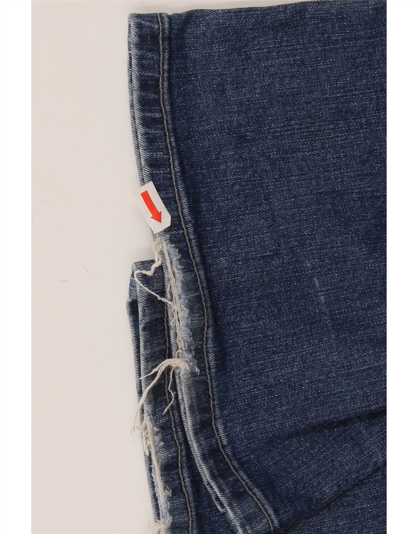- AI Description: Diesel women's blue bootcut jeans in pre-owned excellent condition. Crafted in Italy from stretch denim, these classic jeans feature a regular fit, zip closure, pockets, and subtle logo accent. There are minor holes/tears at the hem and moderate visible wear on the front and back. Additional accents include button and stud detailing. Label size 29. Recommended retail price: £72.