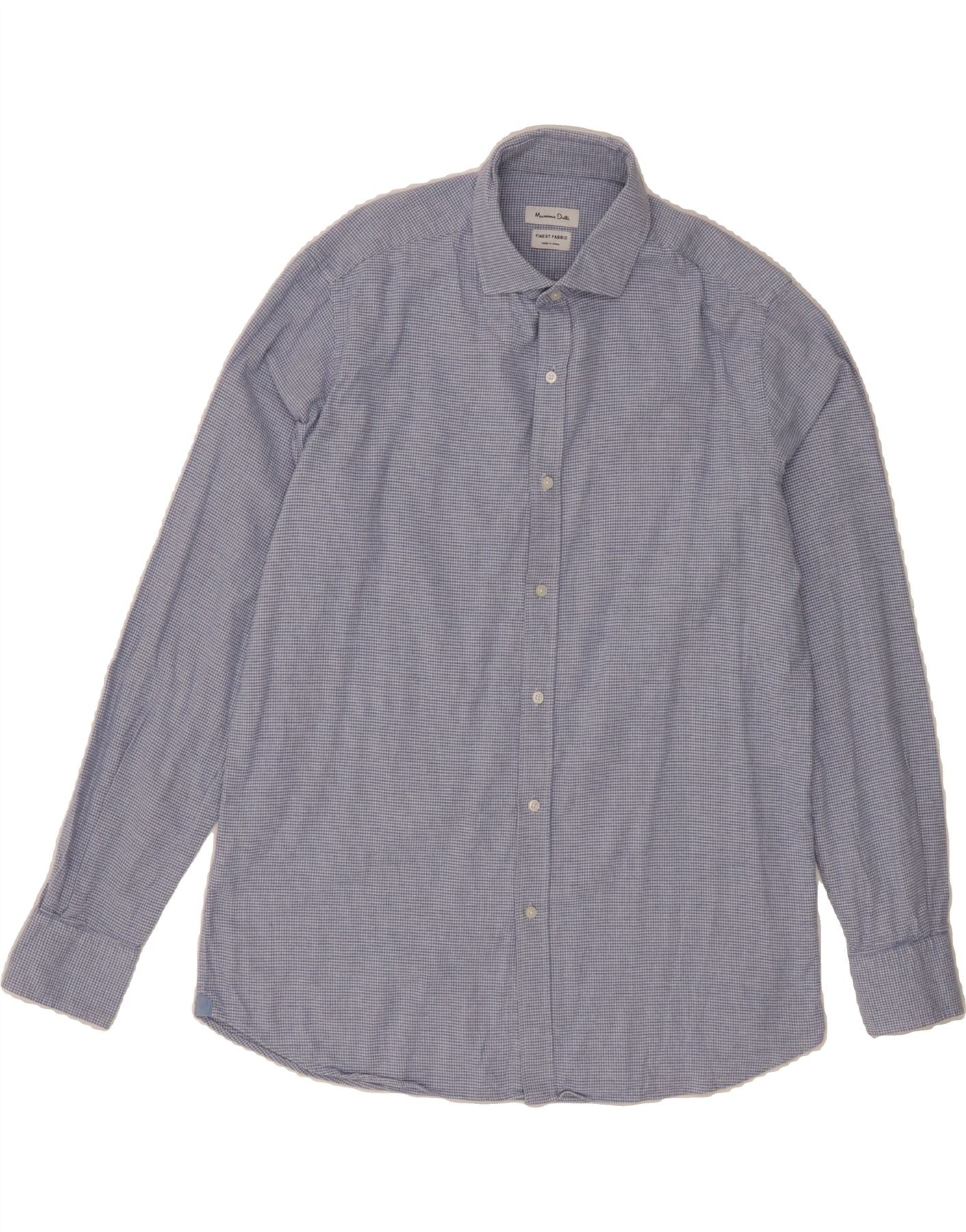 MASSIMO DUTTI Mens Shirt Large Blue Houndstooth Cotton