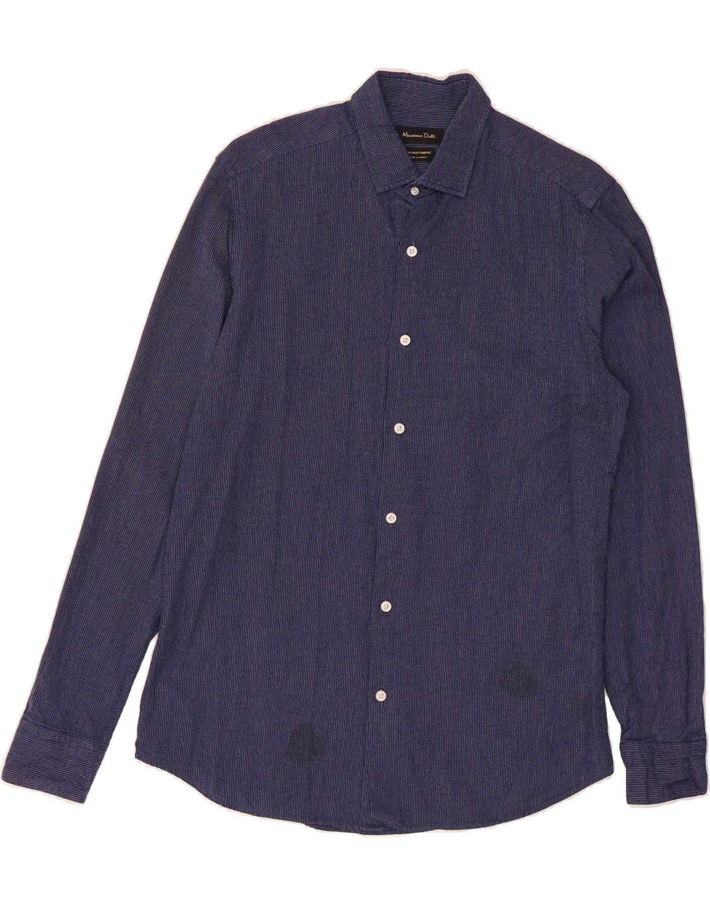 MASSIMO DUTTI Mens Shirt Medium Navy Blue Pinstripe Cotton
