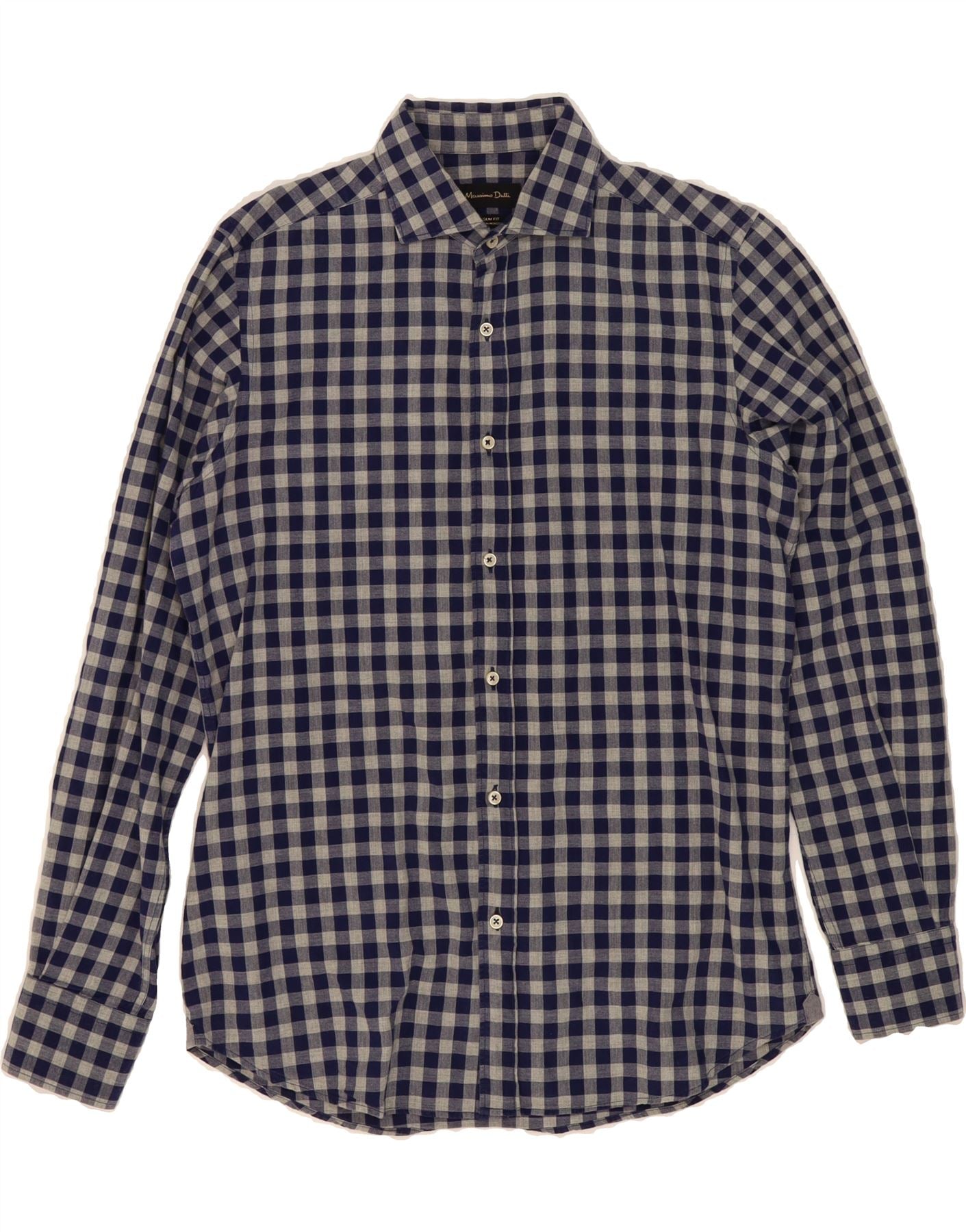 MASSIMO DUTTI Mens Slim Fit Shirt Medium Navy Blue Check Cotton
