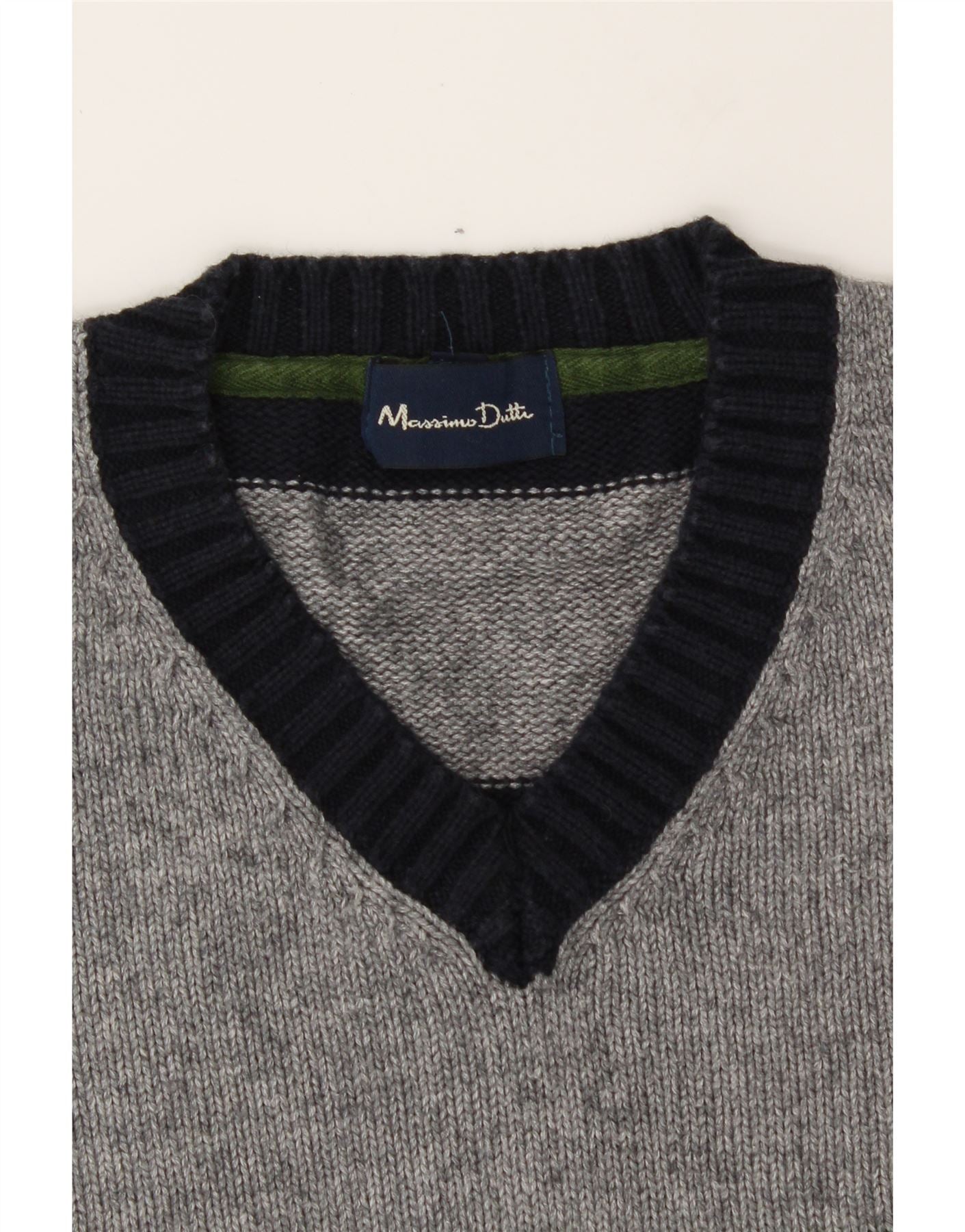 MASSIMO DUTTI Mens V-Neck Jumper Sweater XL Navy Blue Colourblock Cotton