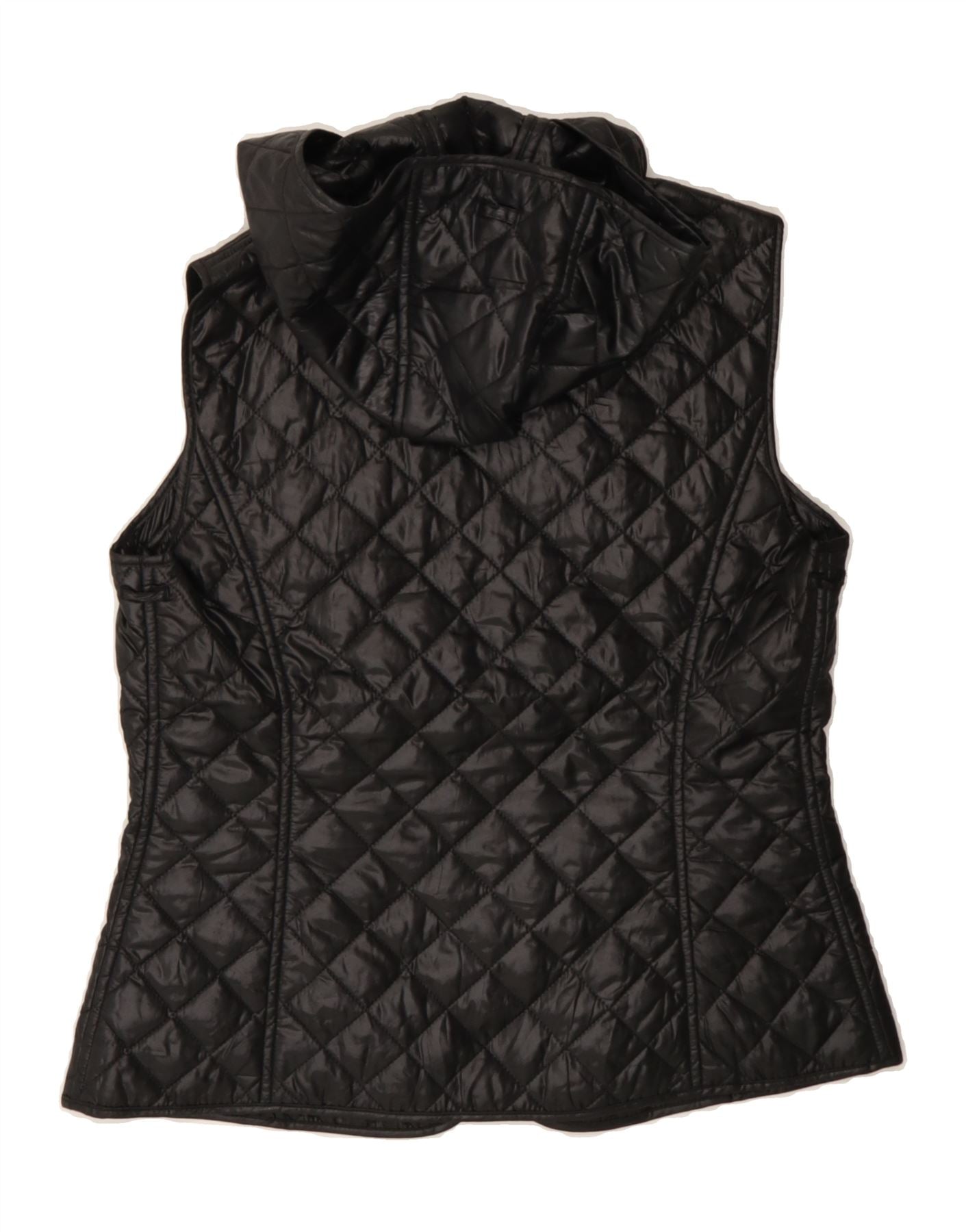 MASSIMO DUTTI Womens Hooded Quilted Gilet UK 12 Medium Black