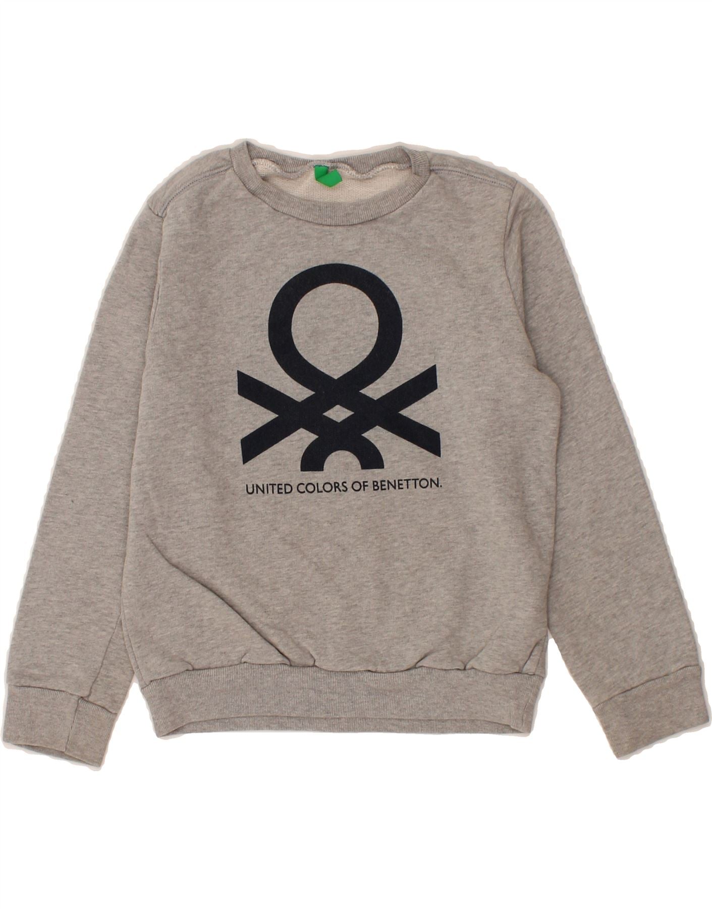 BENETTON Boys Graphic Sweatshirt Jumper 7-8 Years Medium Grey Cotton