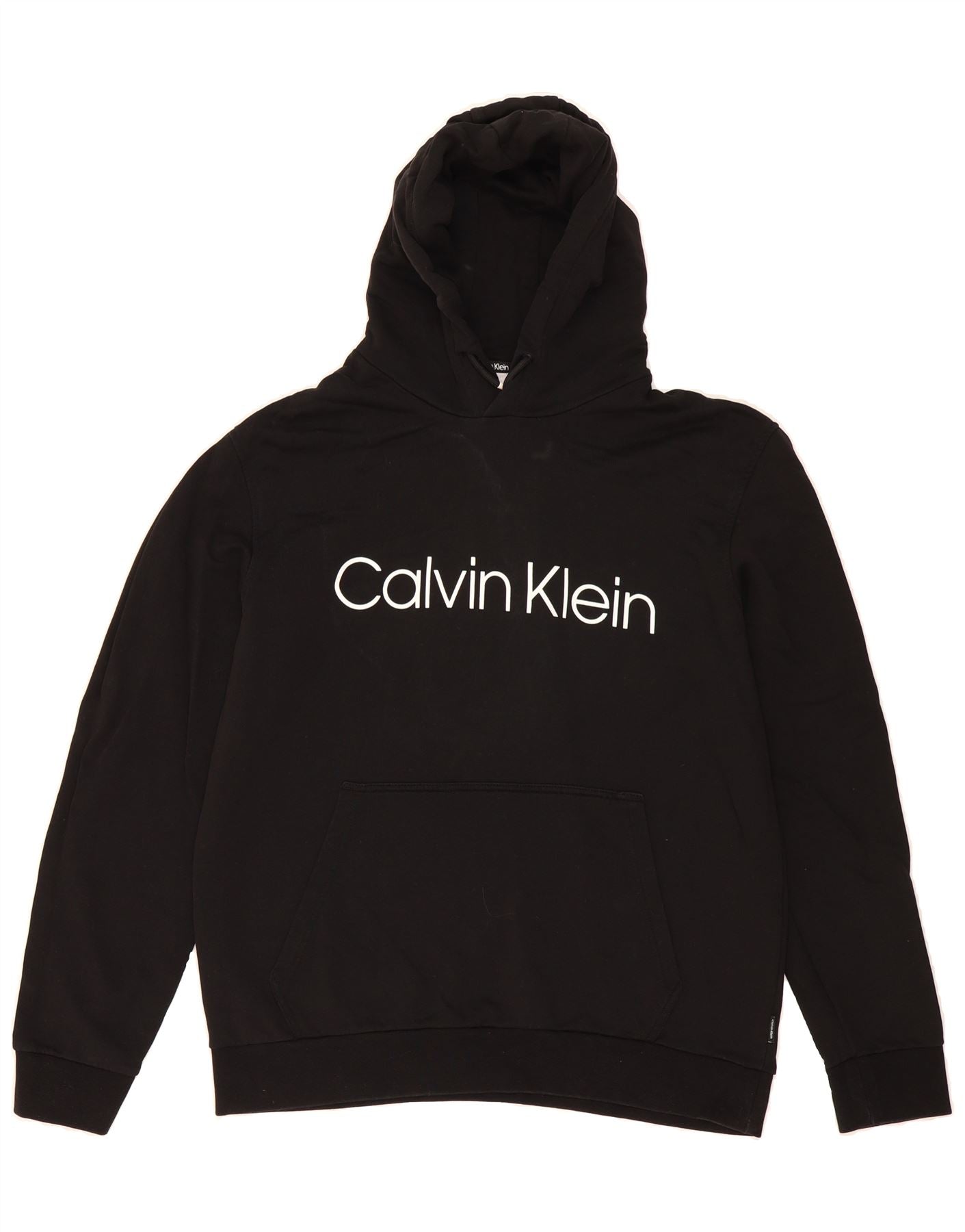 CALVIN KLEIN Mens Graphic Hoodie Jumper Medium Black Cotton