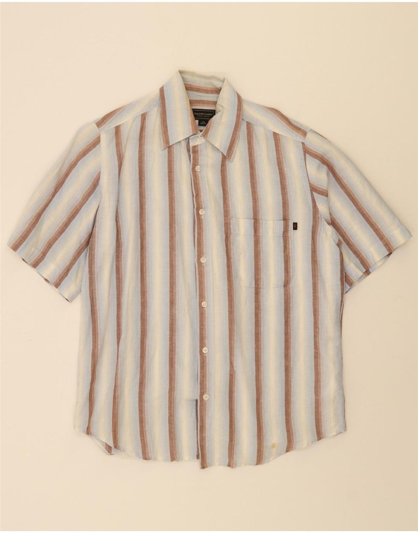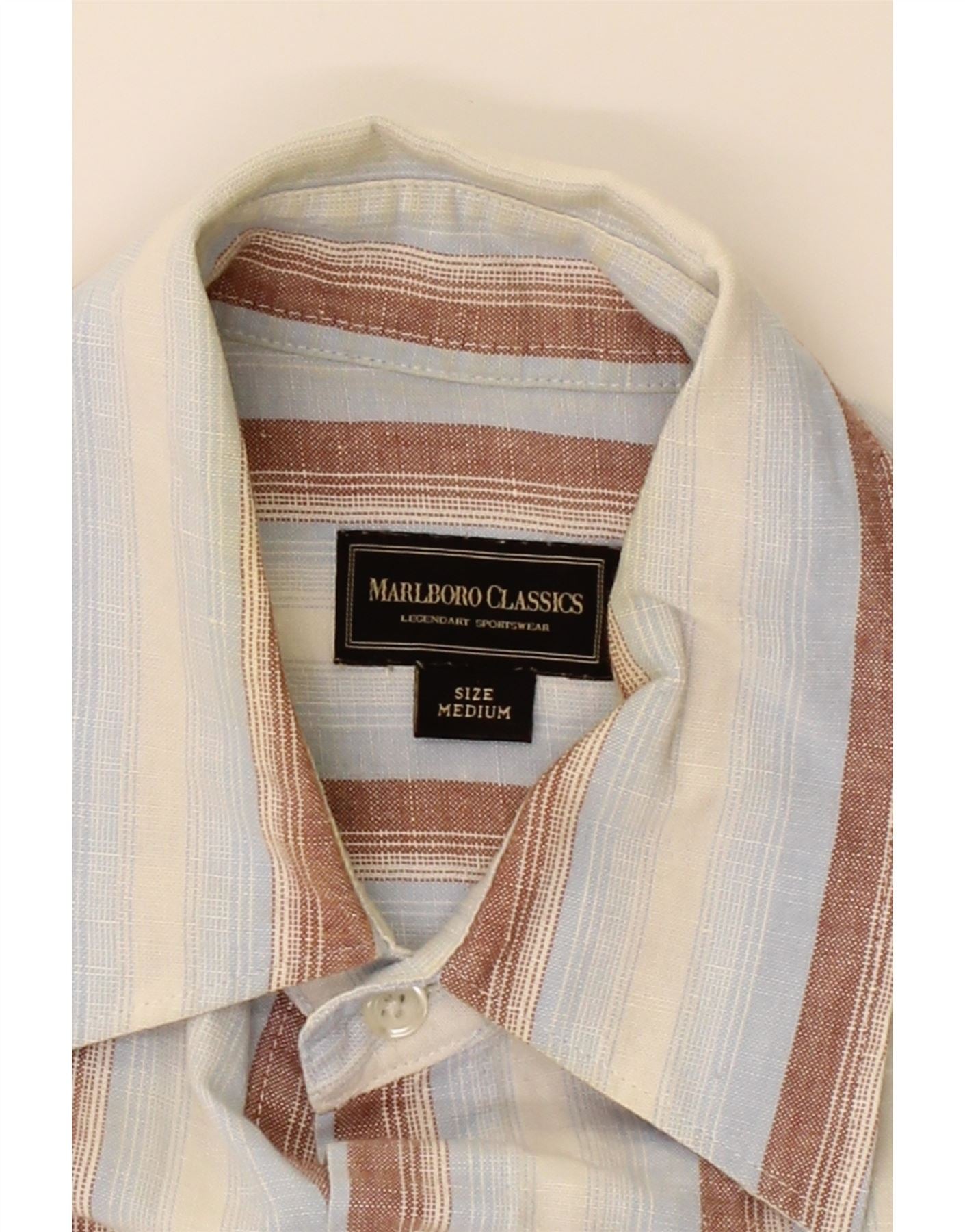 MARLBORO CLASSICS Mens Short Sleeve Shirt Medium Blue Striped Cotton