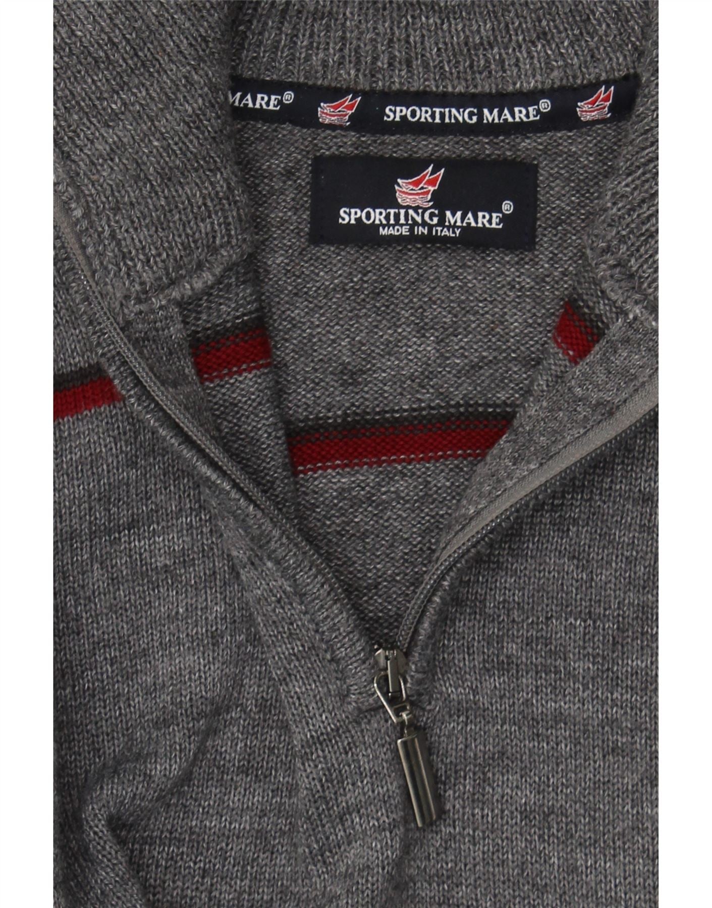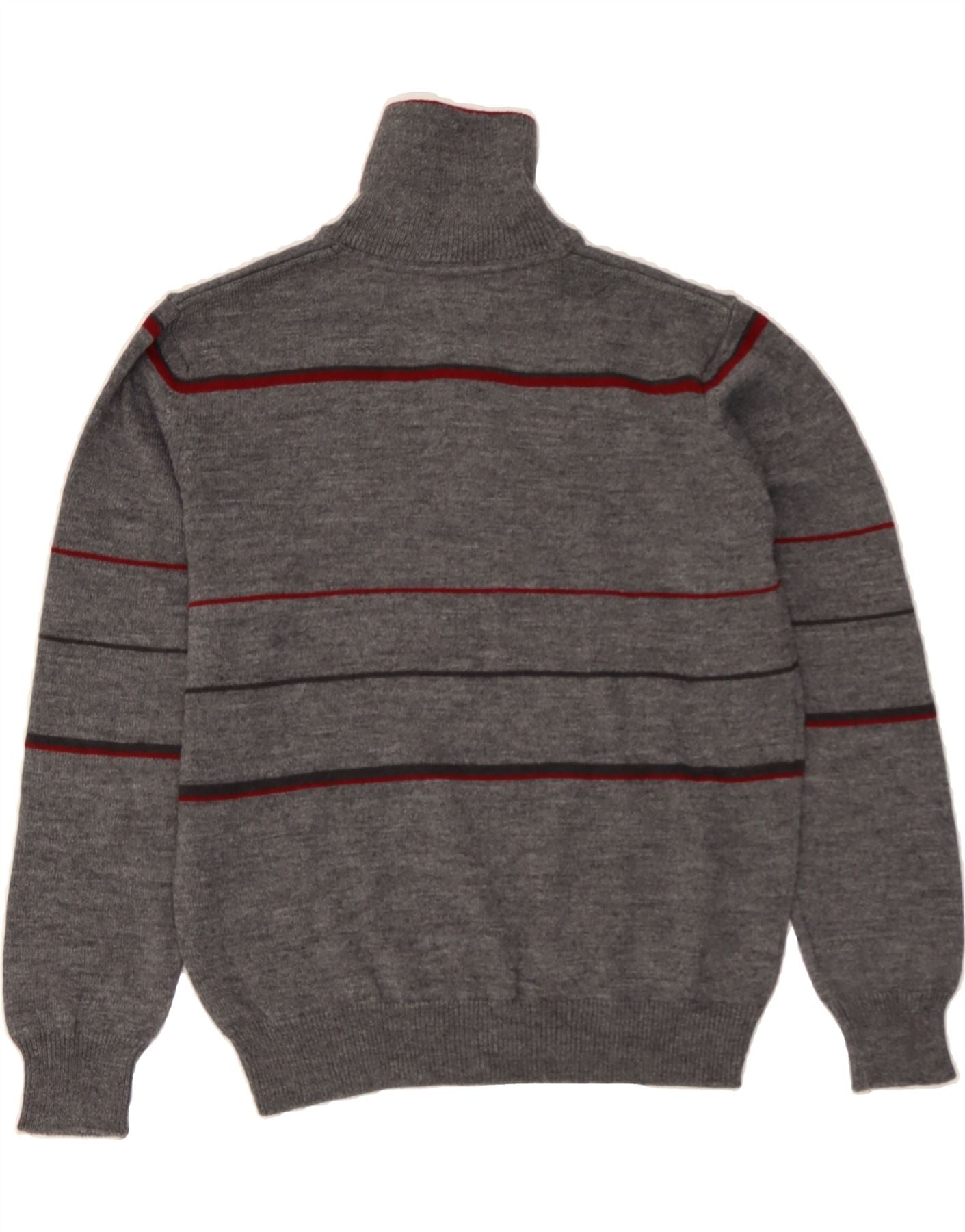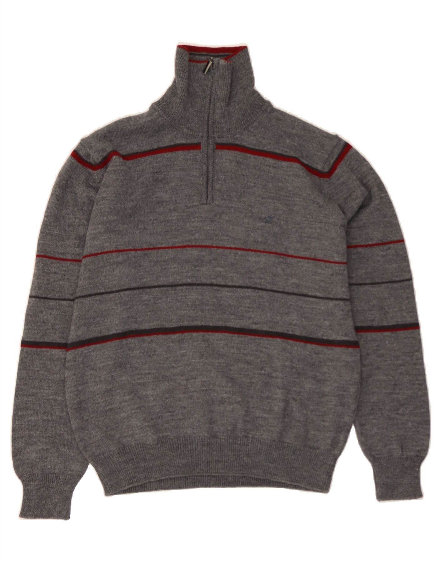 VINTAGE Mens Zip Neck Jumper Sweater Medium Grey Striped Wool