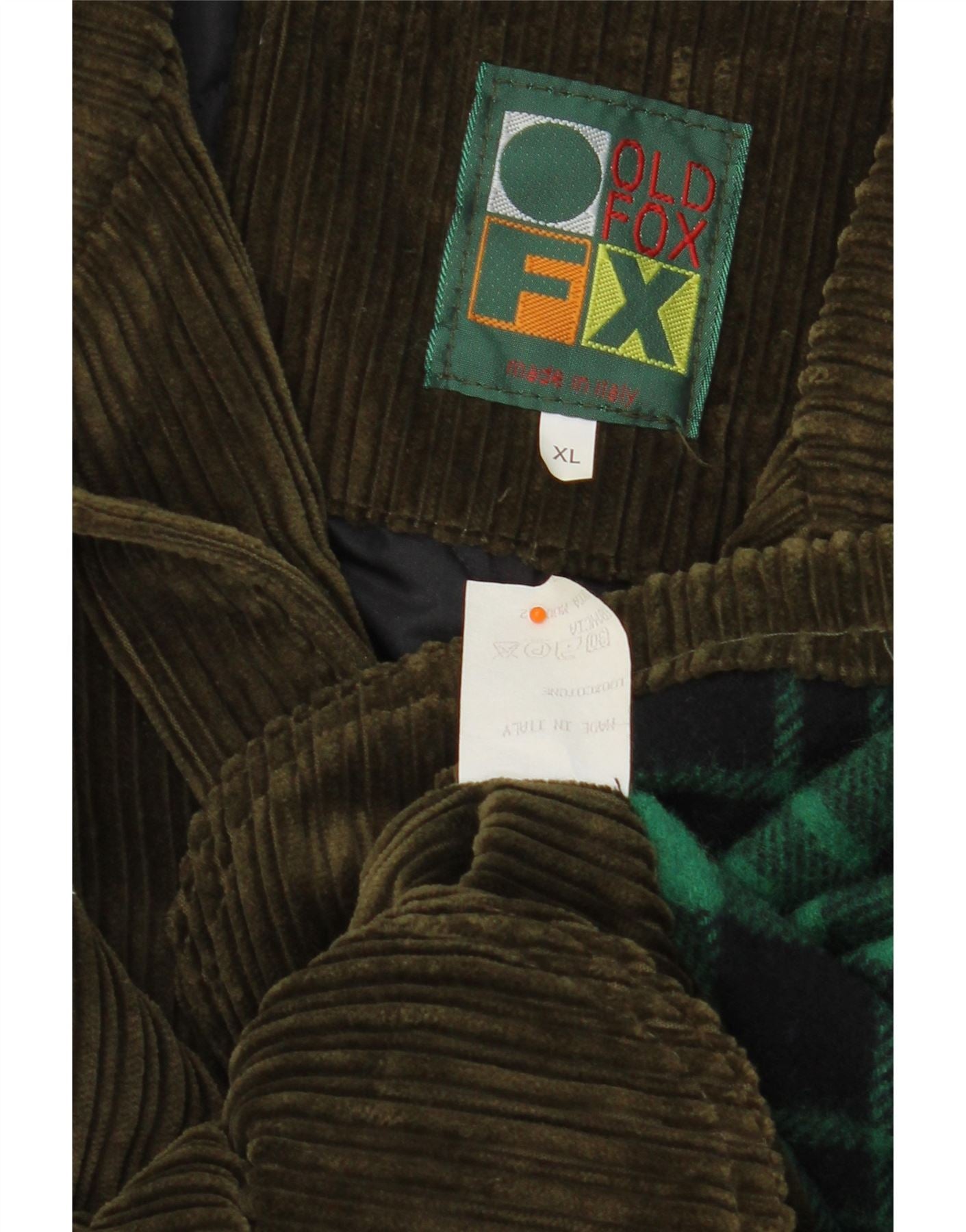 - AI Description: This pre-owned Fox corduroy jacket for men is in excellent condition. Crafted in Italy, this classic, green jacket features a regular fit, long sleeves, and a collared neckline. It boasts a button closure and practical pockets, with a full lining for added warmth. Accented with buttons, it also includes subtle logo detailing. The jacket is a size XL, perfect for everyday wear.