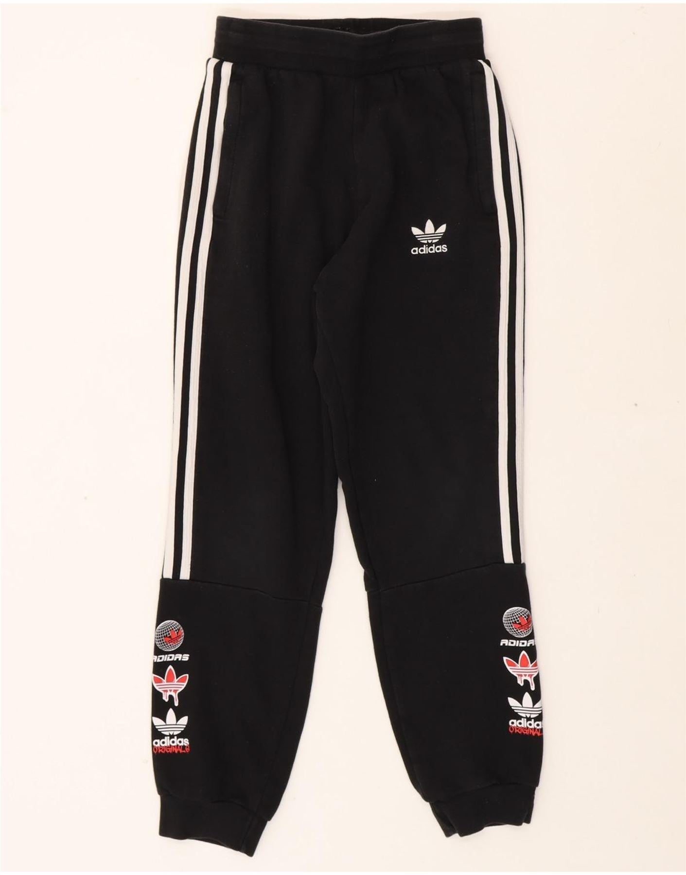 ADIDAS Boys Graphic Tracksuit Trousers Joggers 11-12 Years Black