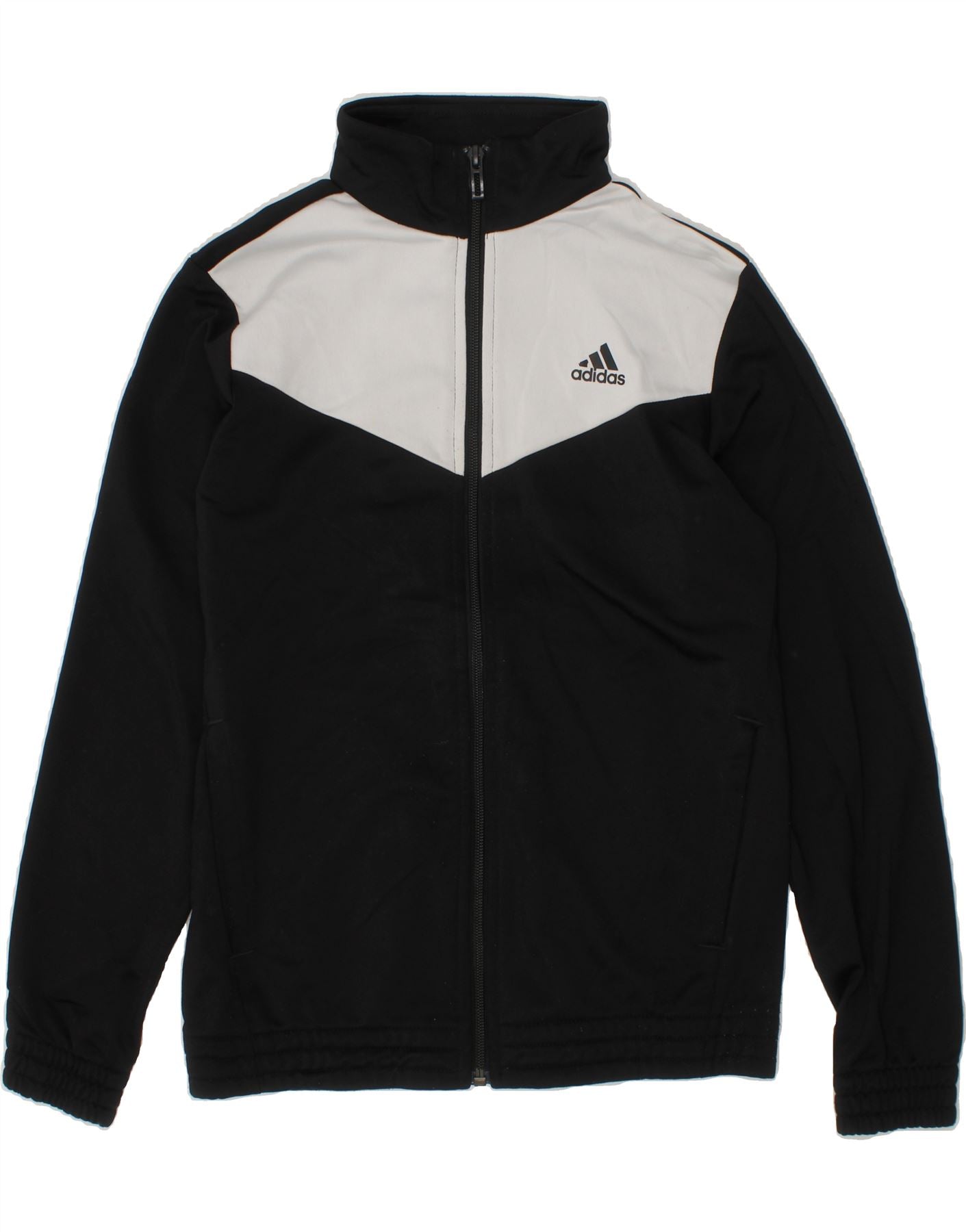 ADIDAS Boys Tracksuit Top Jacket 10-11 Years Black Colourblock Polyester