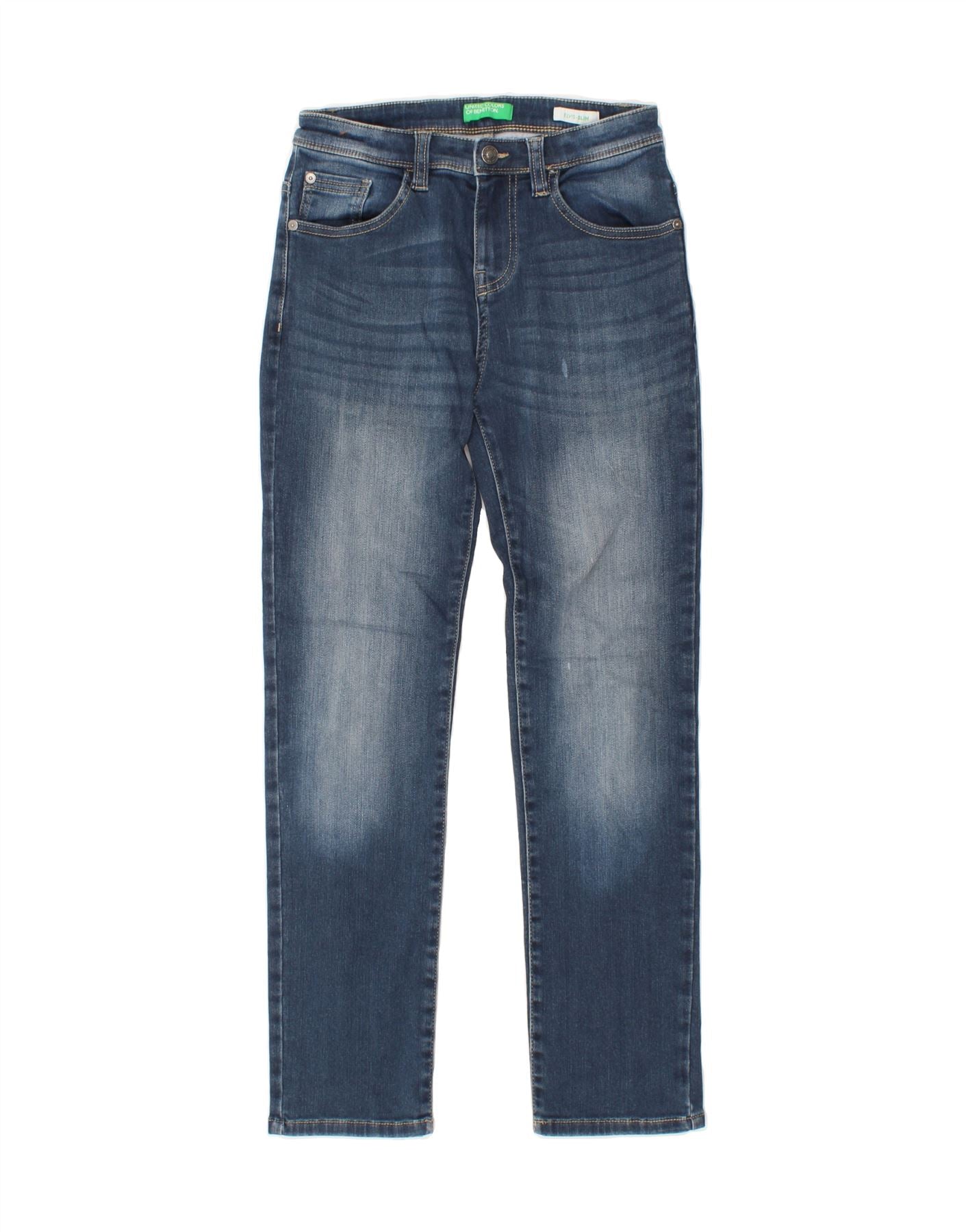 BENETTON Boys Elvis Slim Jeans 11-12 Years 2XL W26 L27 Navy Blue Cotton