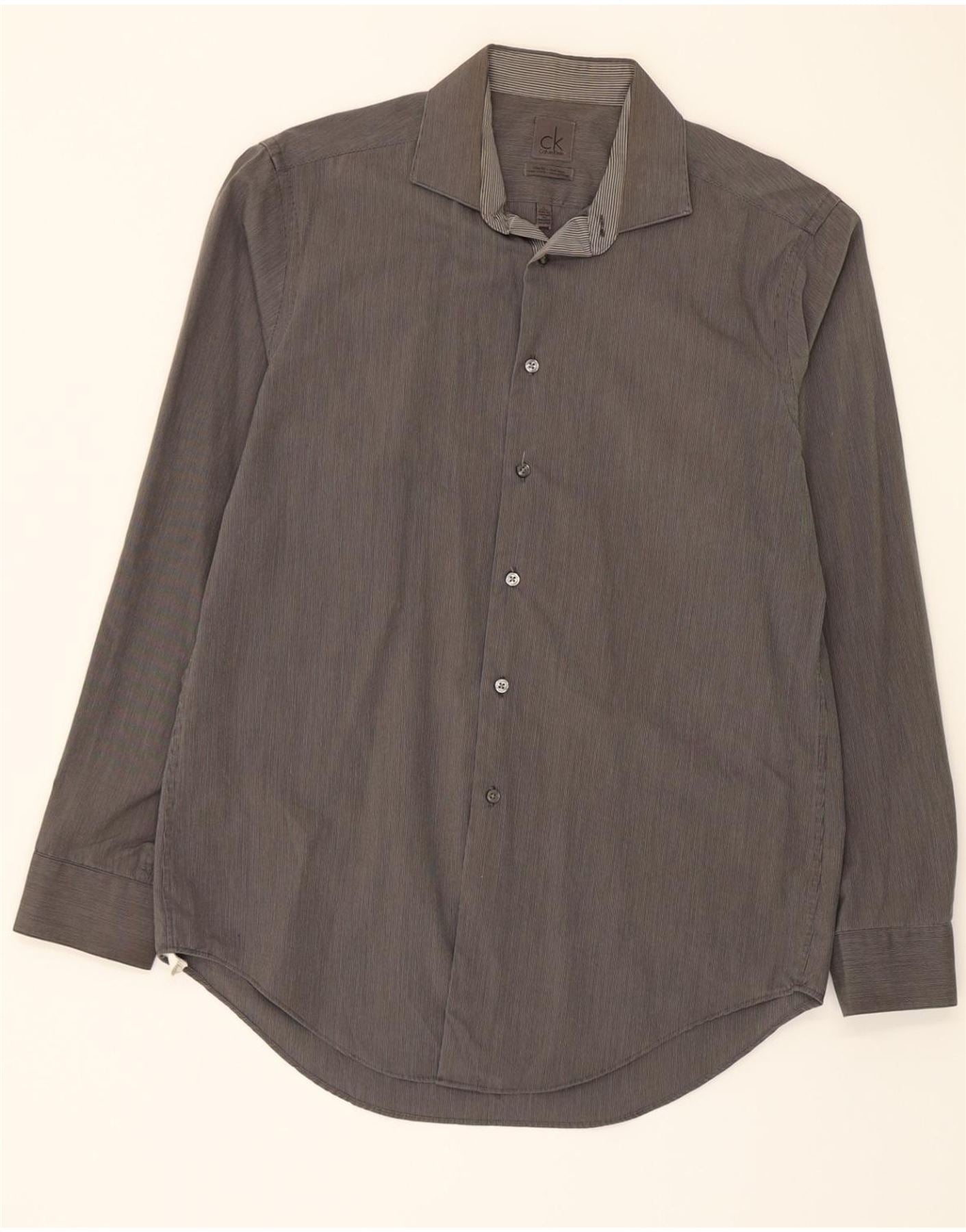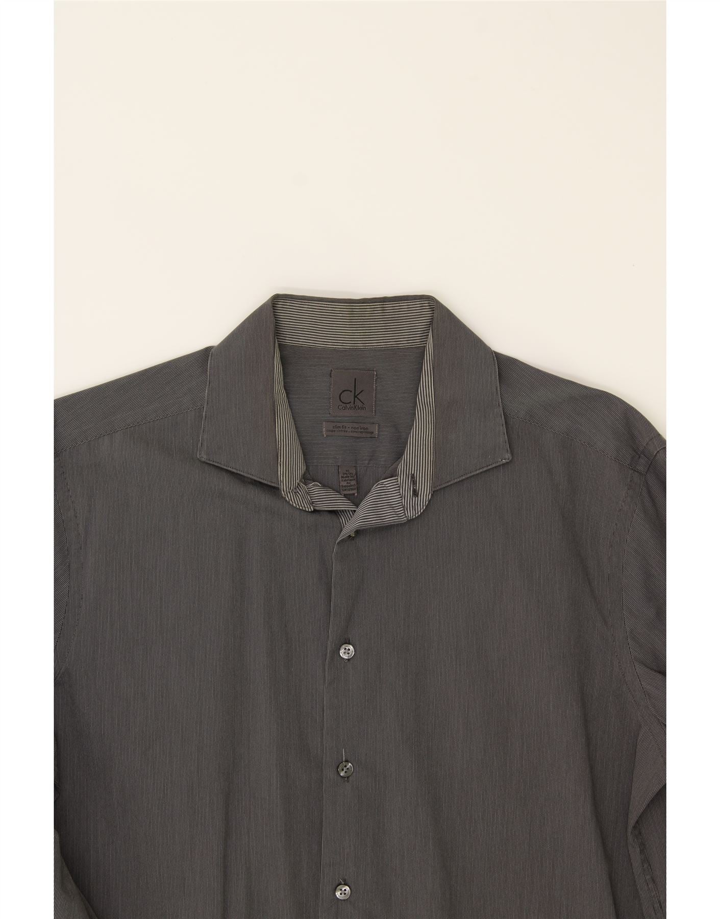 CALVIN KLEIN Mens Slim Fit Shirt Size 16 Large Grey Pinstripe