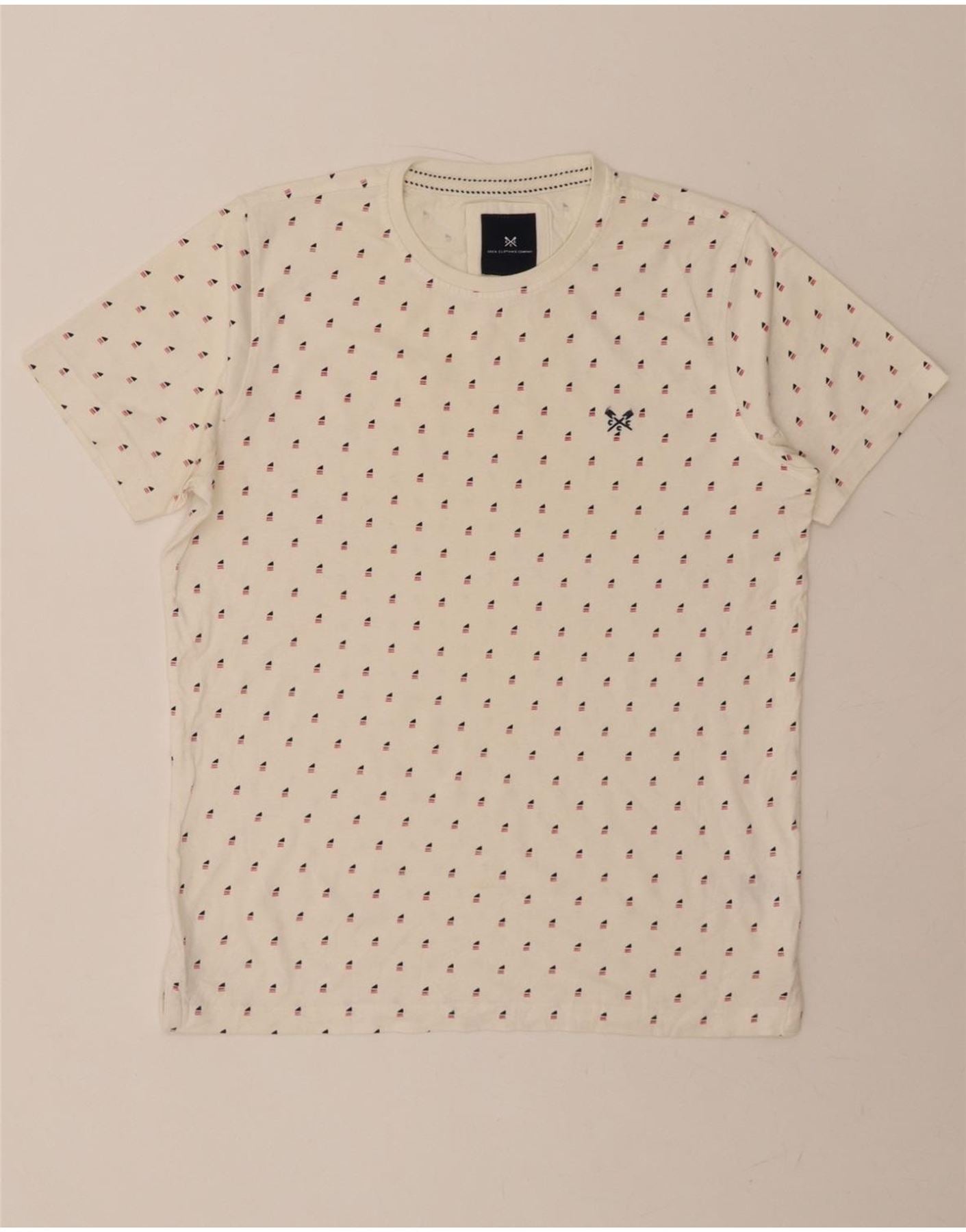CREW CLOTHING Mens Abstract Pattern T-Shirt Top Medium White Cotton