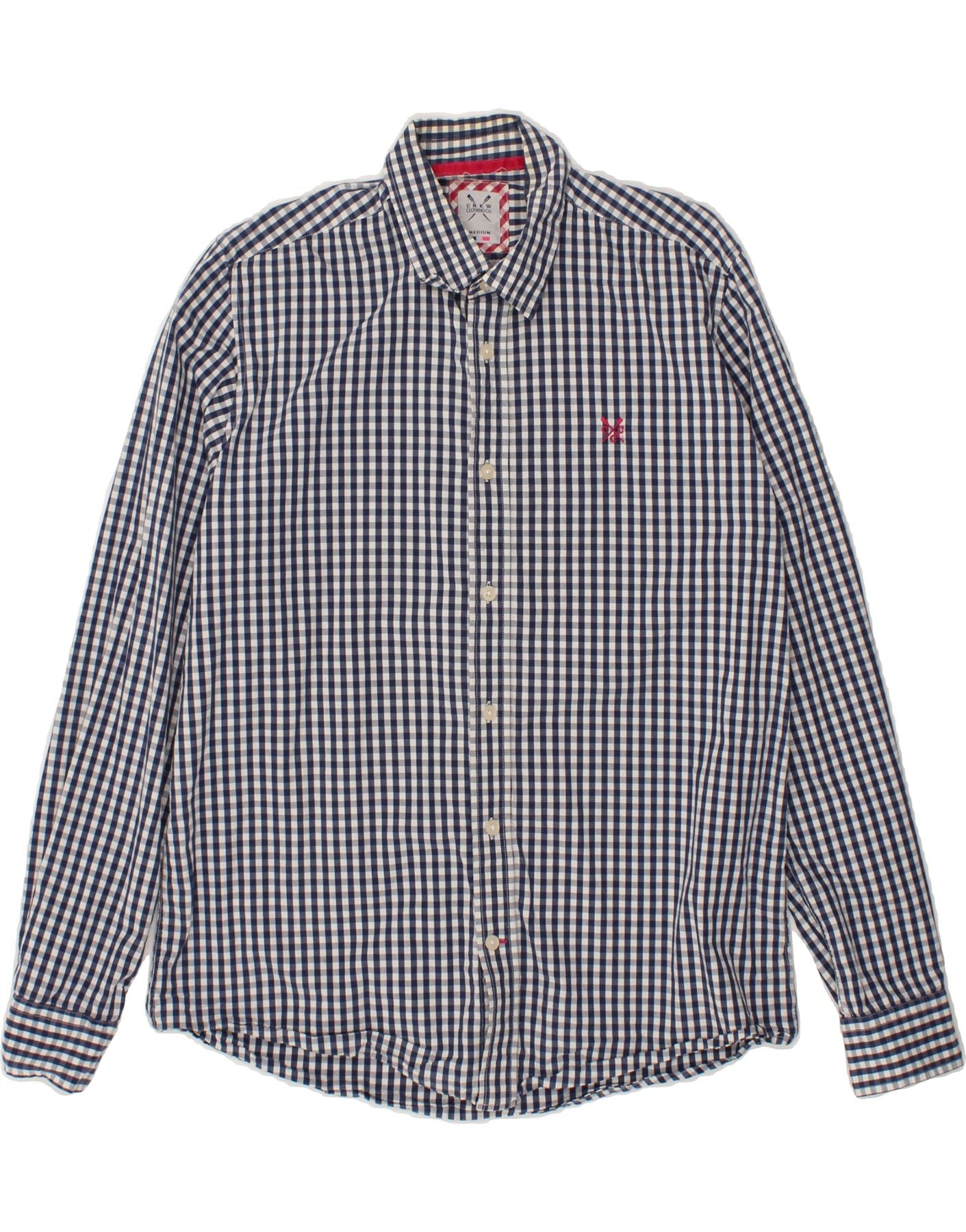 CREW CLOTHING Mens Classic Fit Shirt Medium Navy Blue Gingham Cotton