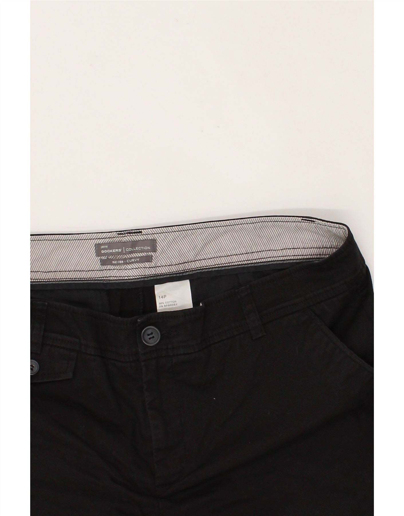 DOCKERS Womens Curvy Mid Rise Chino Shorts US 14 Large W30 Black Cotton