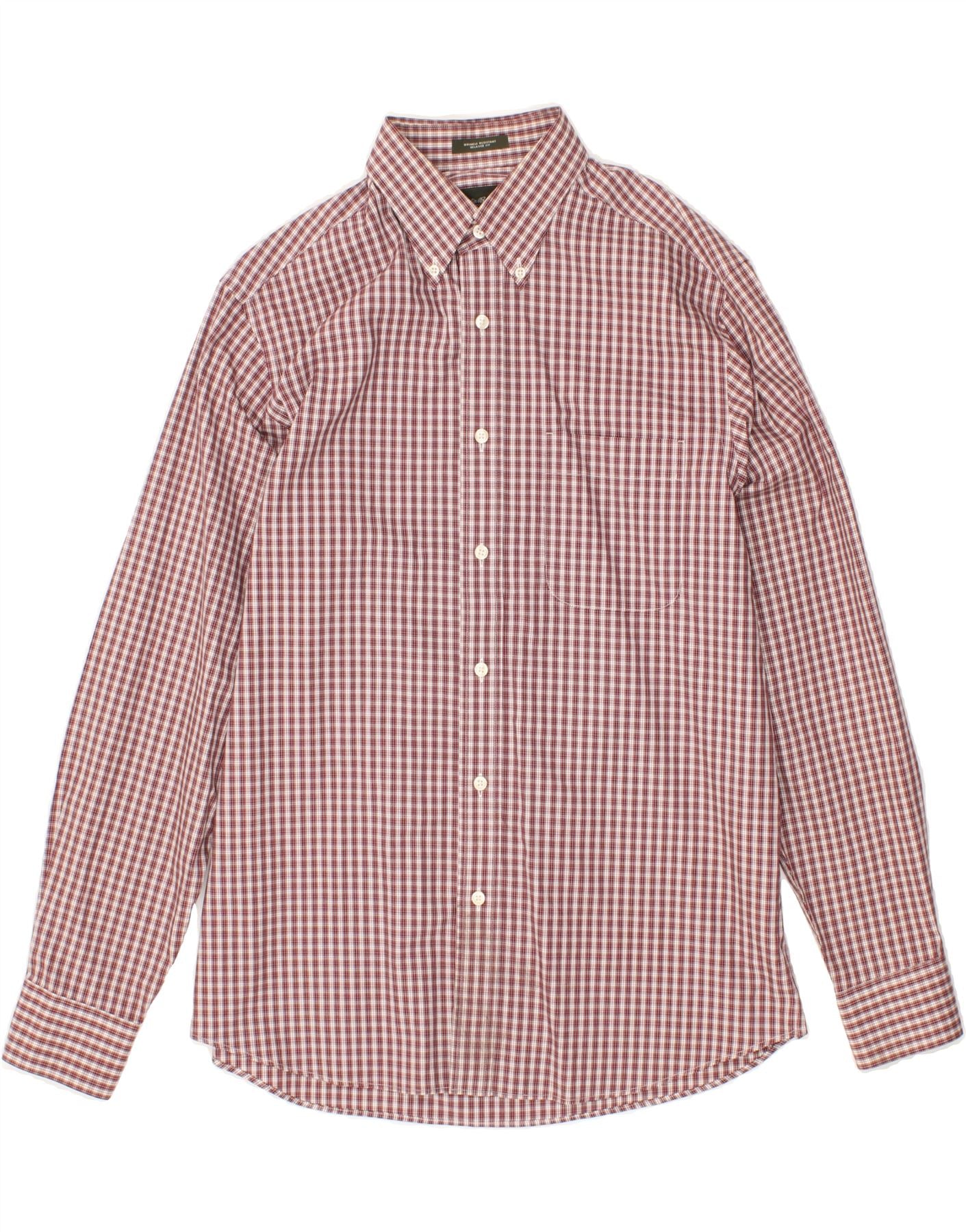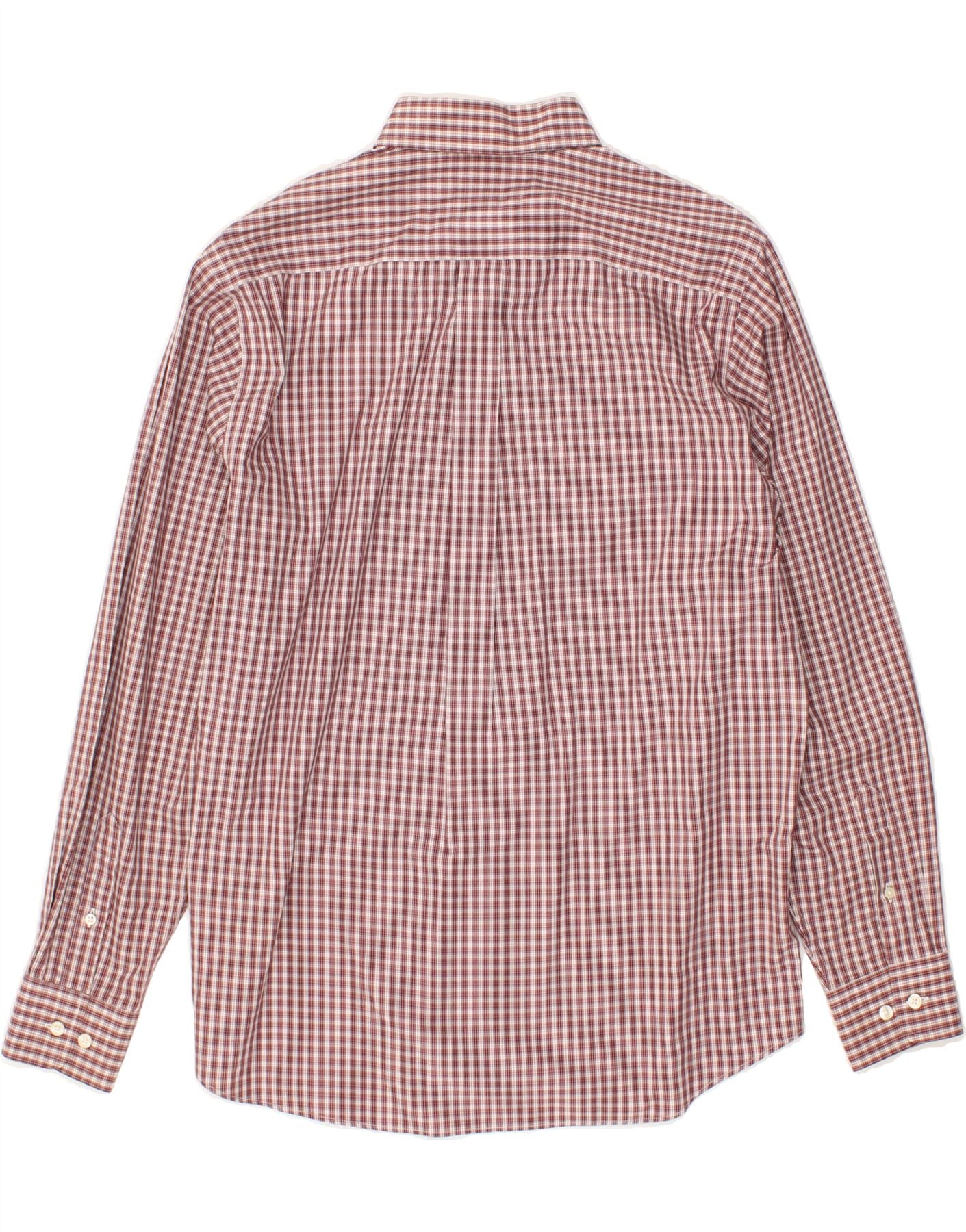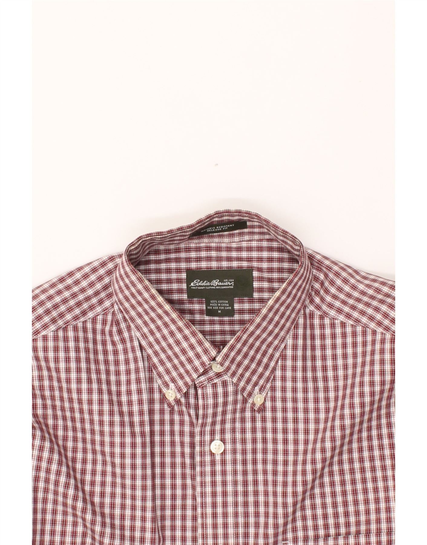 EDDIE BAUER Mens Relaxed Fit Shirt Medium Burgundy Check Cotton