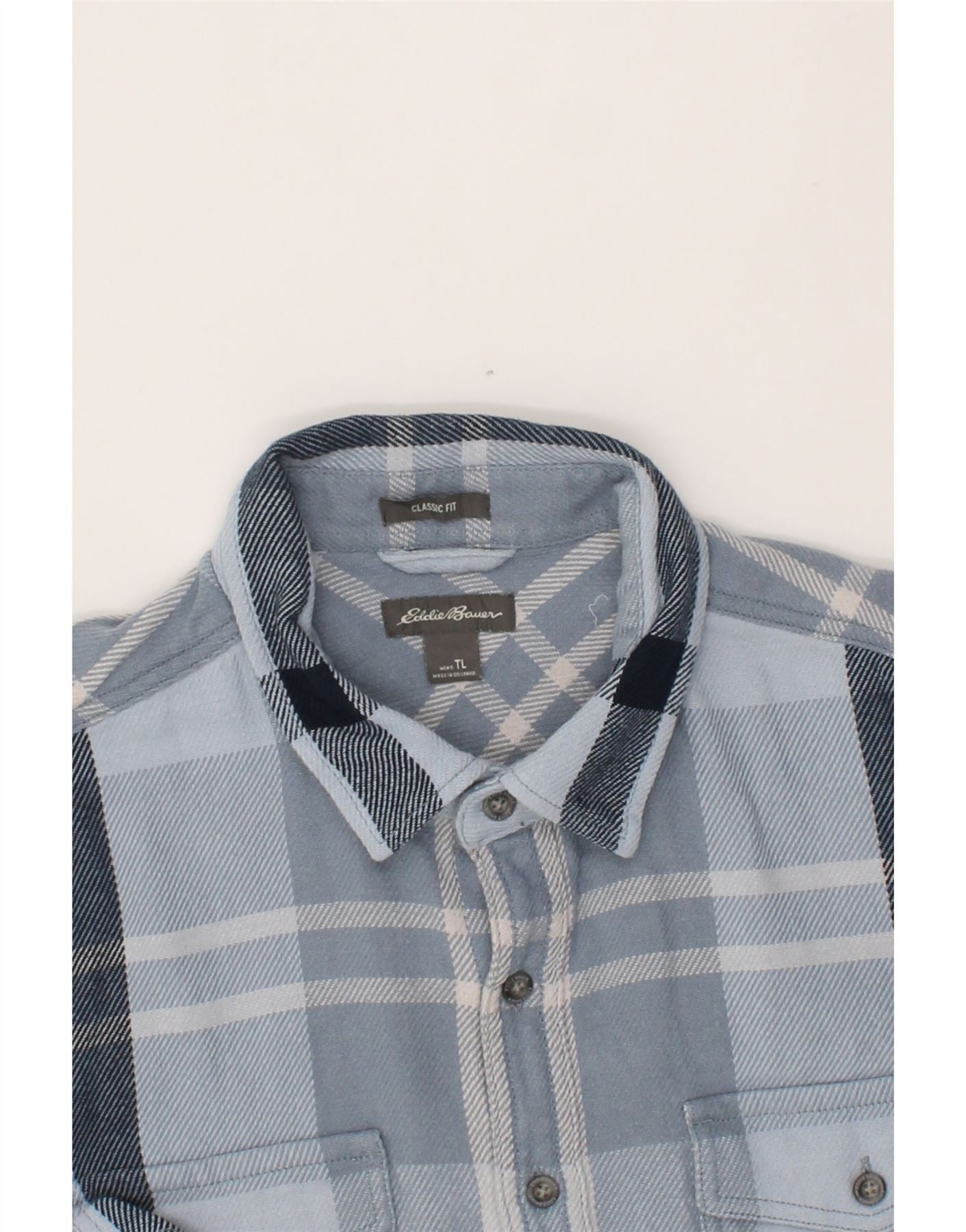 EDDIE BAUER Mens Tall Classic Fit Overshirt Shirt Large Blue Check Cotton