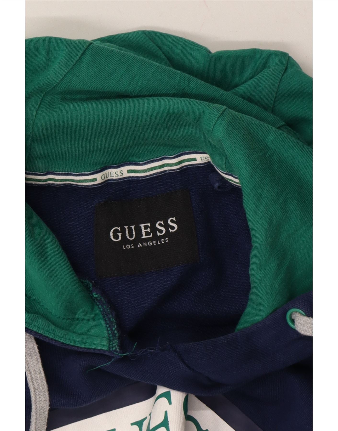 GUESS Mens Graphic Hoodie Jumper UK 40 Medium Navy Blue Cotton
