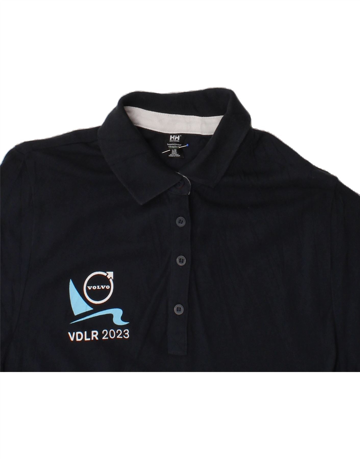 HELLY HANSEN Womens Graphic Polo Shirt UK 16 Large Navy Blue Cotton
