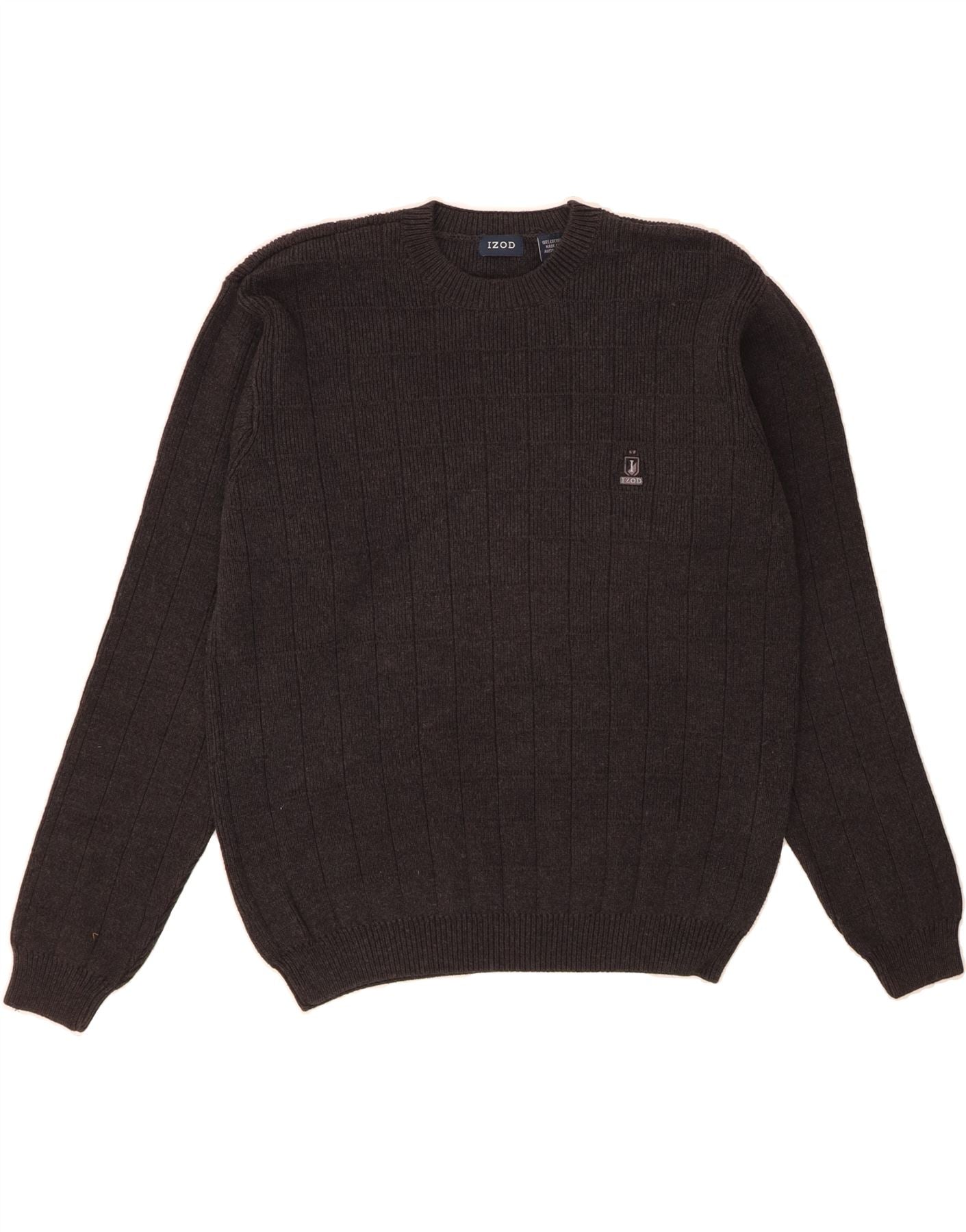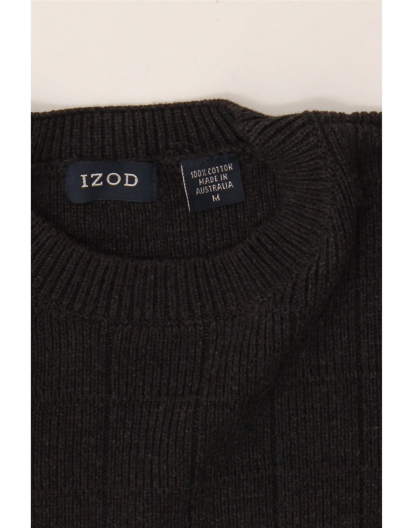 - AI Description: This classic Izod men's sweater, crafted in Australia from 100% cotton knit, offers timeless style and comfort. In excellent, pre-owned condition, the black, long-sleeve jumper features a round neck and a regular fit. A subtle logo adds a touch of branding. This crew neck pullover is a versatile wardrobe staple. Label size M.