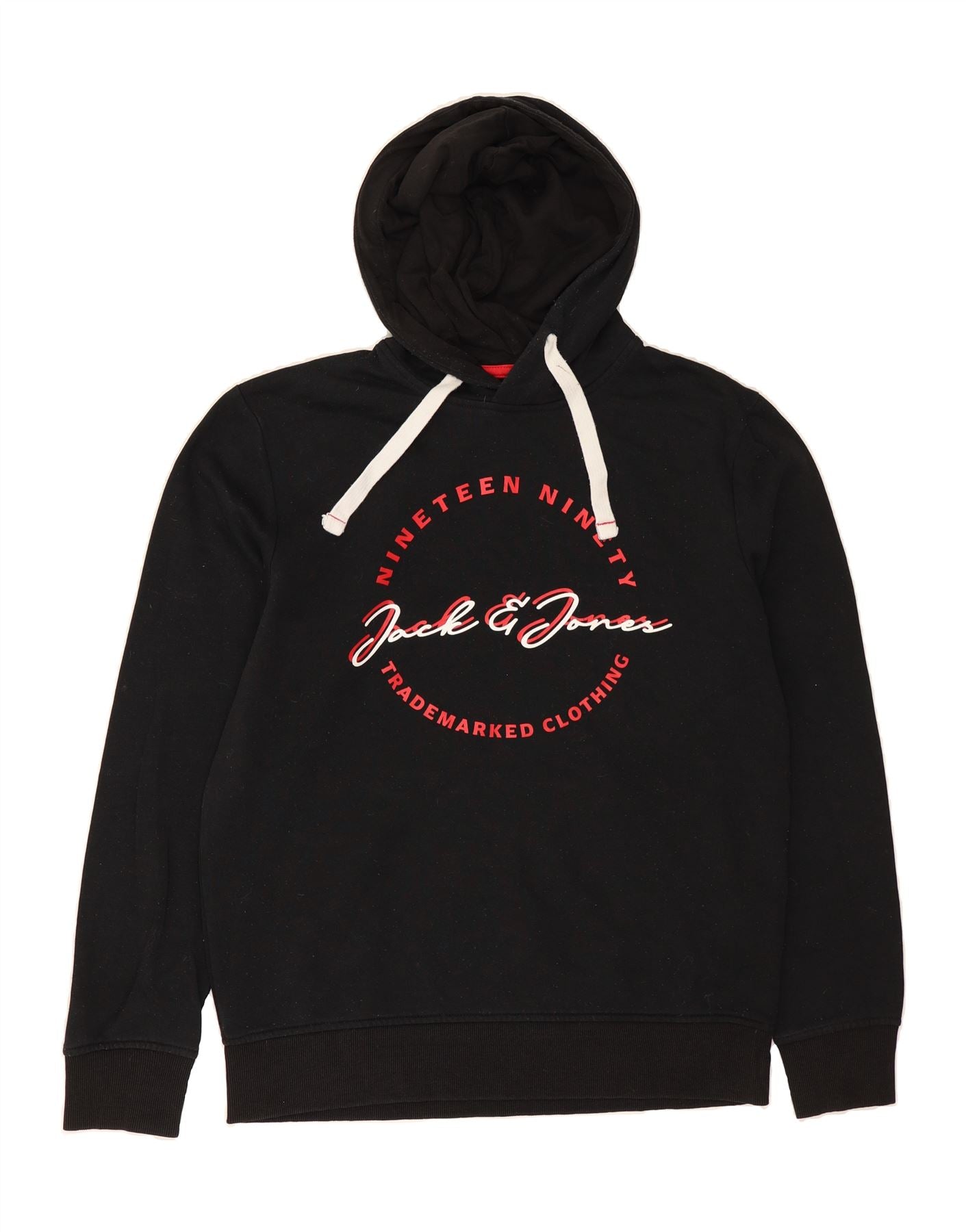JACK & JONES Mens Graphic Hoodie Jumper Medium Black Cotton