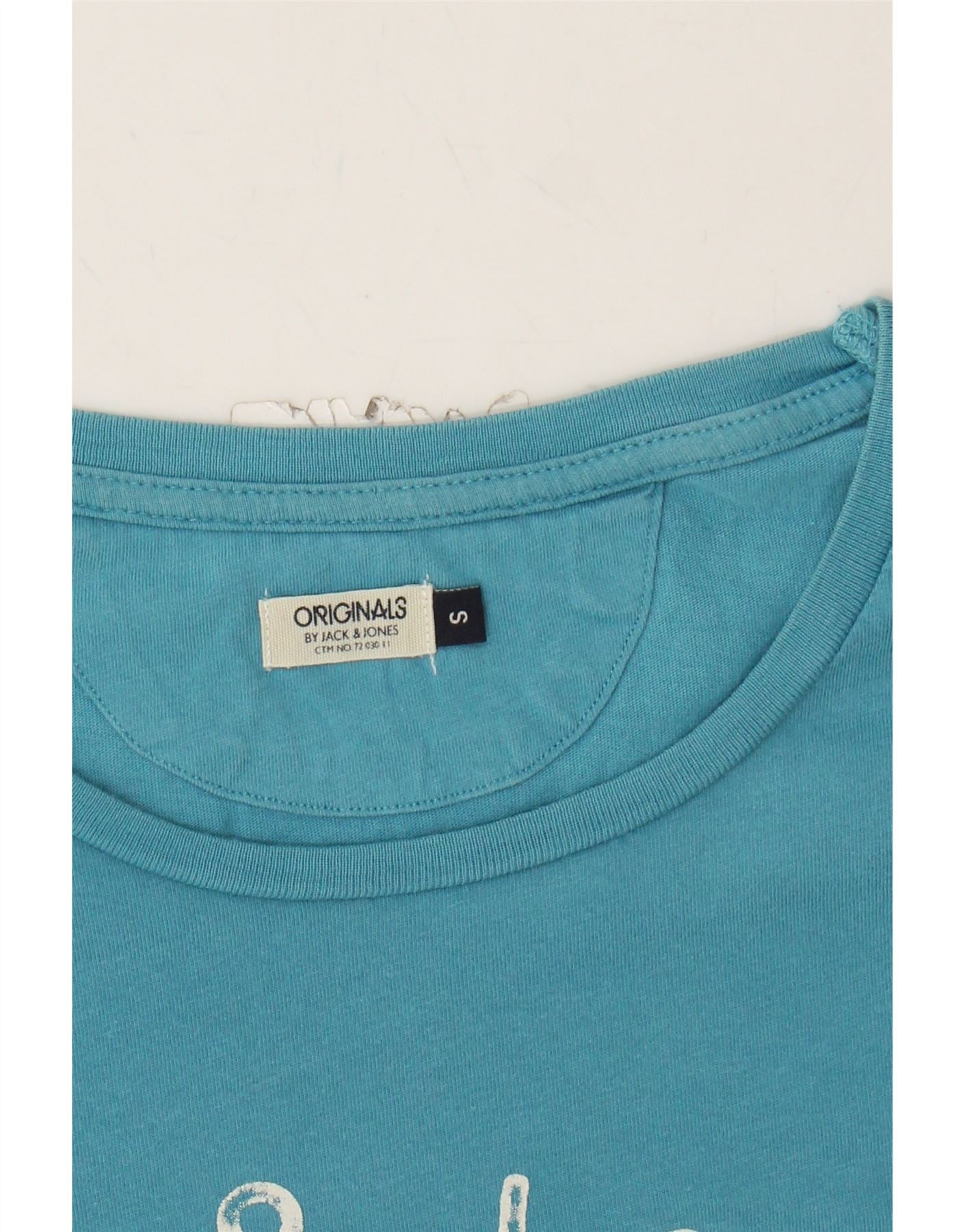 JACK & JONES Mens Graphic T-Shirt Top Small Blue Colourblock Cotton