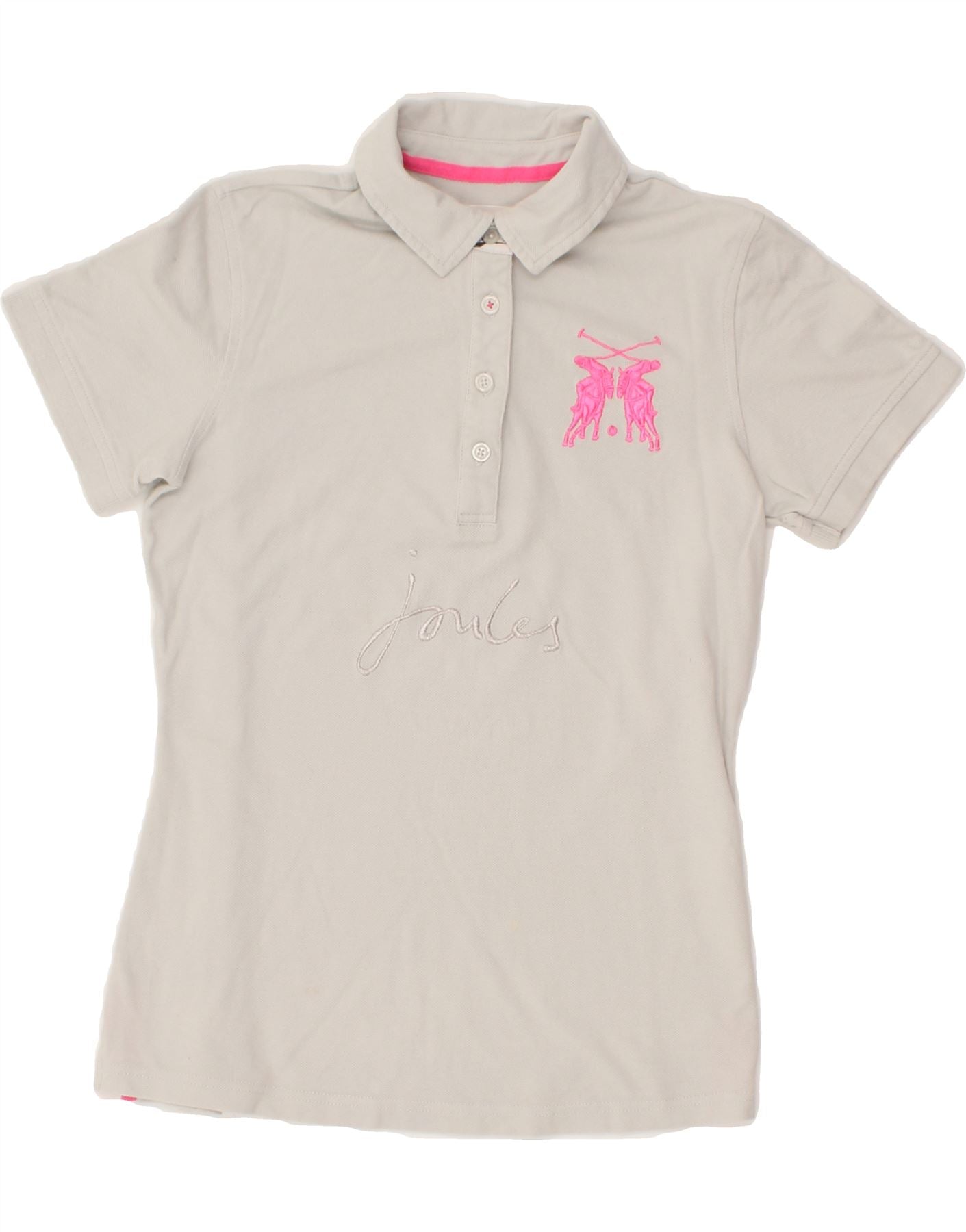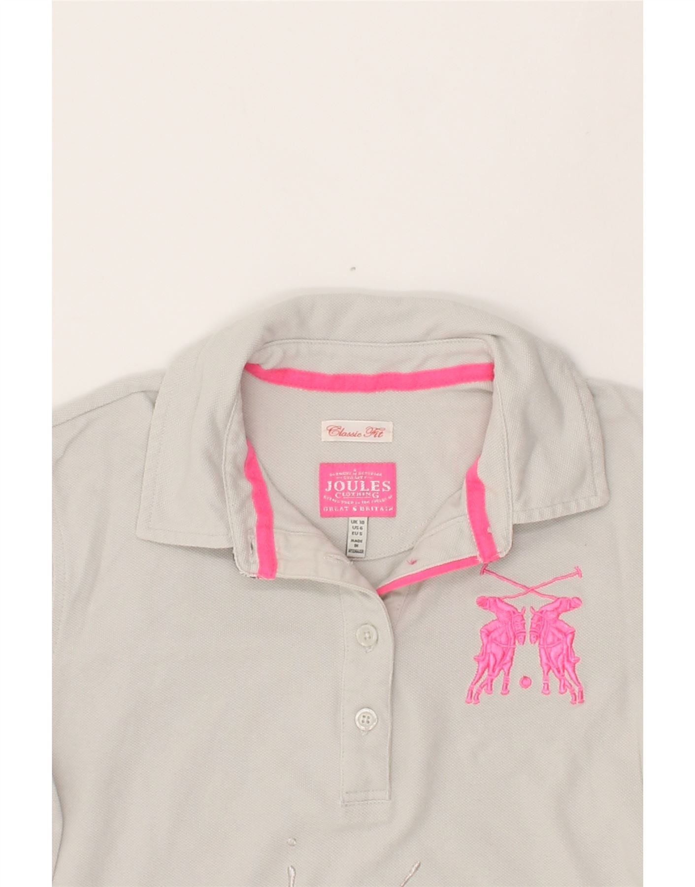 JOULES Womens Classic Fit Graphic Polo Shirt UK 10 Small White Cotton