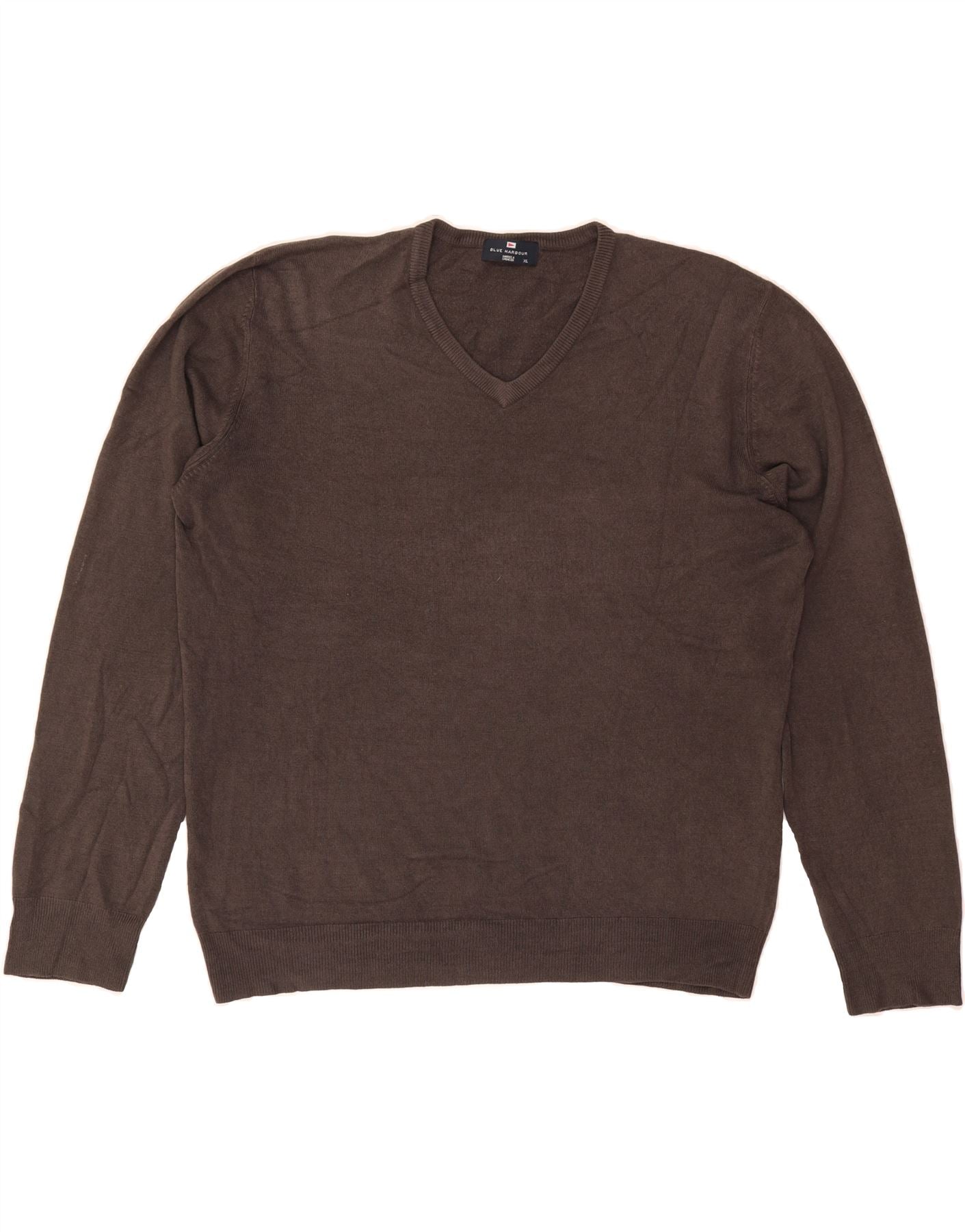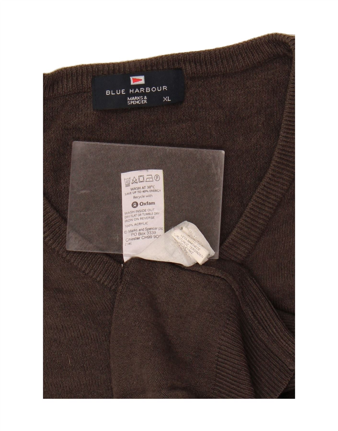 MARKS & SPENCER Mens Blue Harbour V-Neck Jumper Sweater XL Brown Acrylic