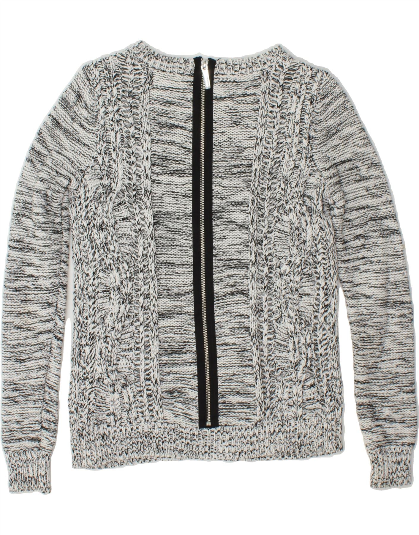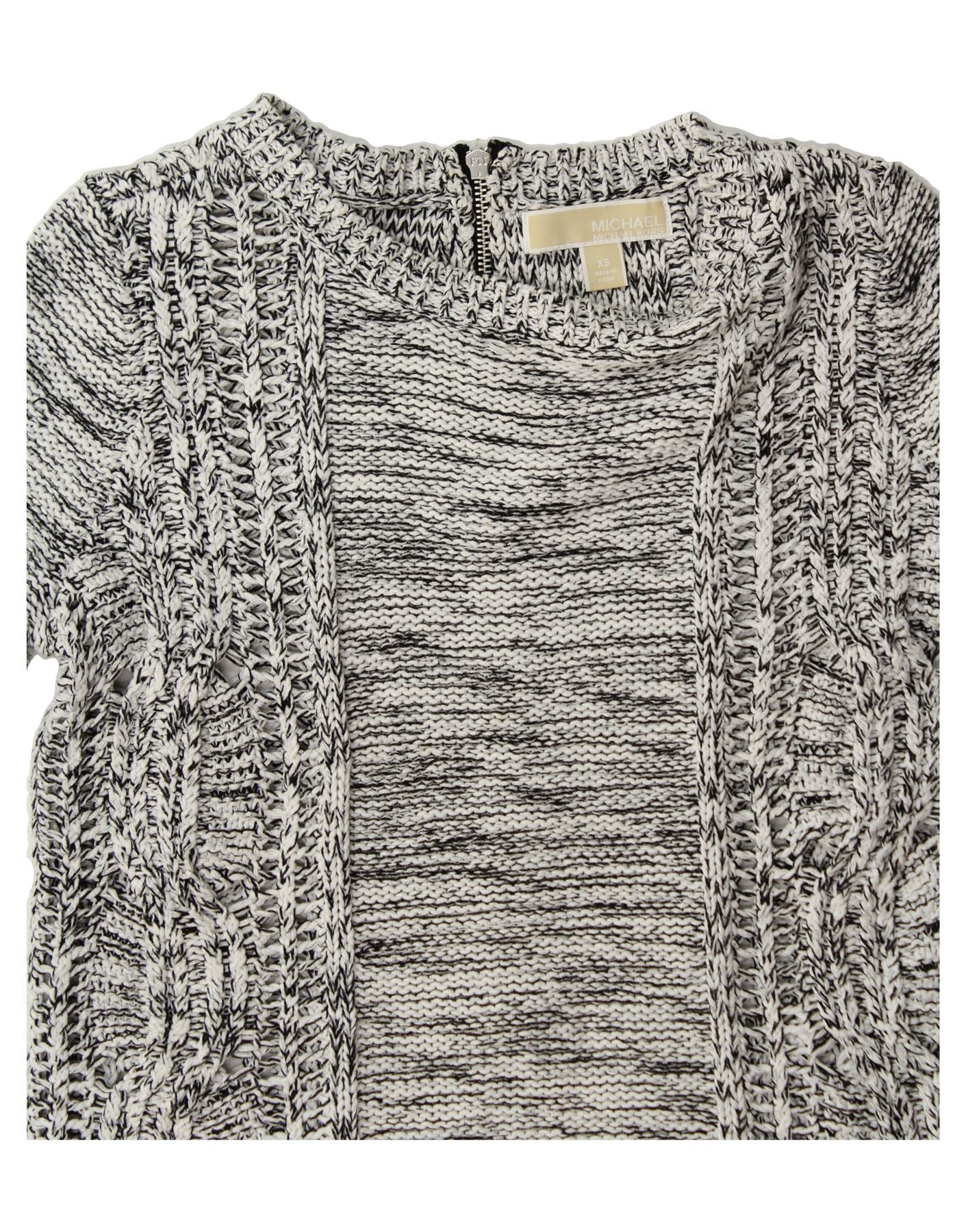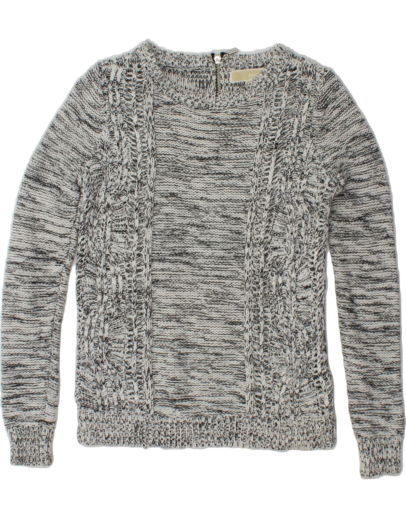 MICHAEL KORS Womens Crew Neck Jumper Sweater UK 6 XS Grey Flecked Cotton