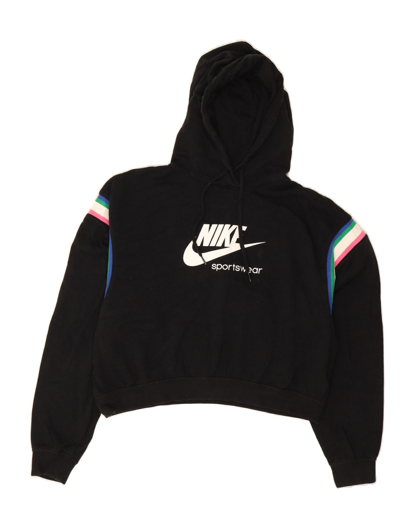 NIKE Womens Oversized Crop Graphic Hoodie Jumper UK 14 Medium Black Cotton