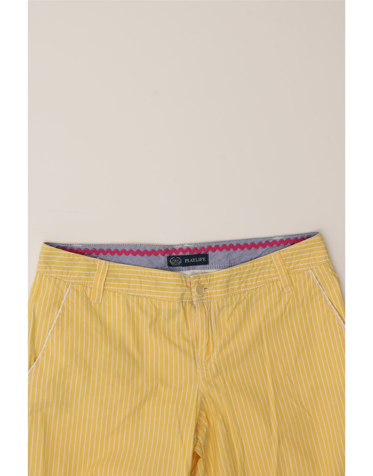 PLAYLIFE Womens Chino Shorts IT 44 Medium W31 Yellow Pinstripe Cotton