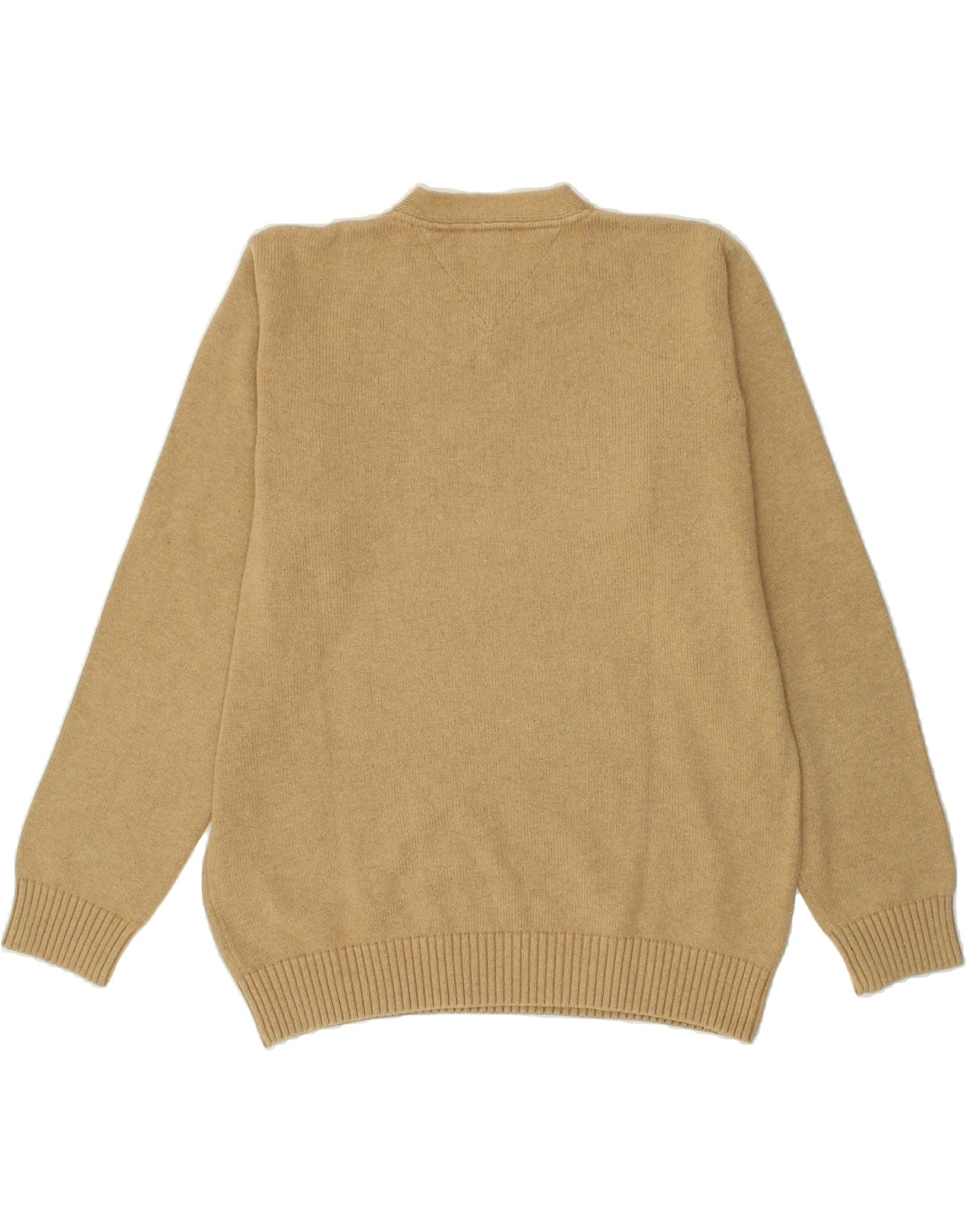 TOMMY HILFIGER Mens V-Neck Jumper Sweater Large Beige Cotton