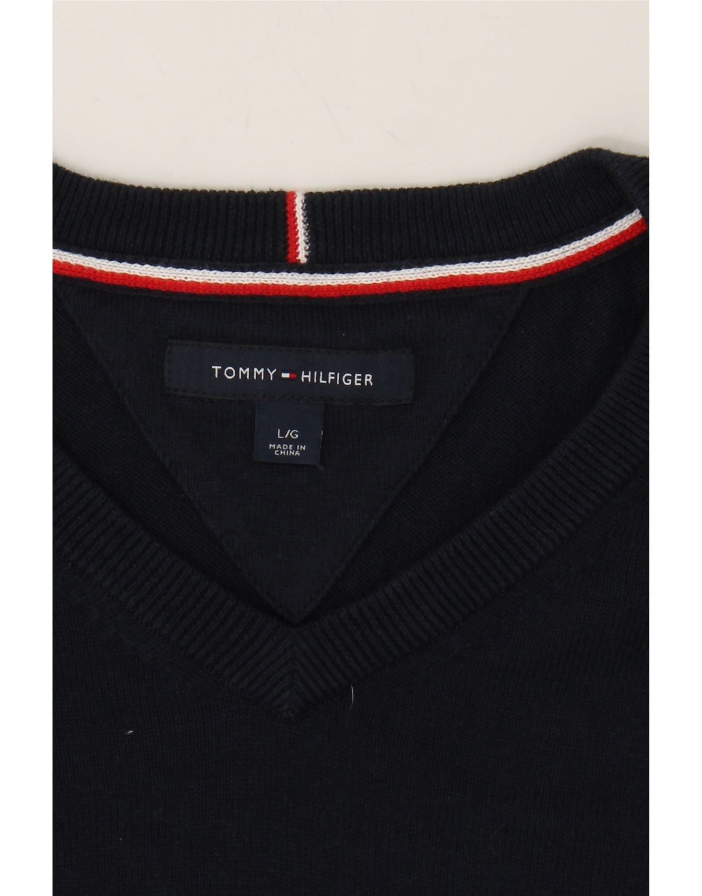 TOMMY HILFIGER Mens V-Neck Jumper Sweater Large Navy Blue Cotton