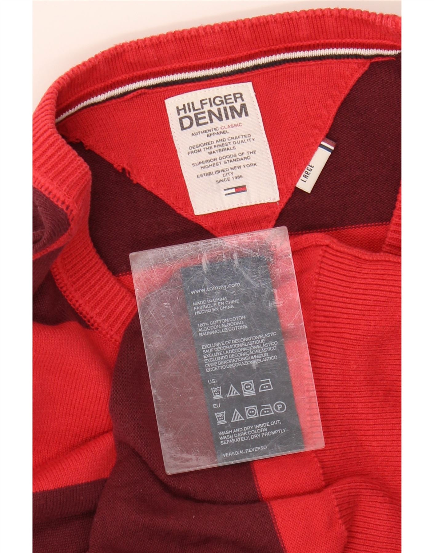 TOMMY HILFIGER Womens Boat Neck Jumper Sweater UK 14 Large Red Striped