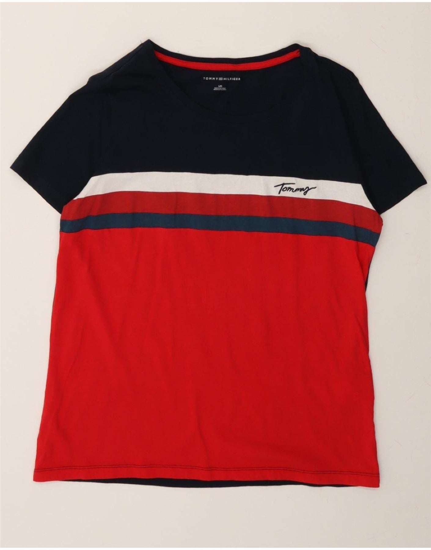 TOMMY HILFIGER Womens T-Shirt Top UK 16 Large Red Colourblock Cotton