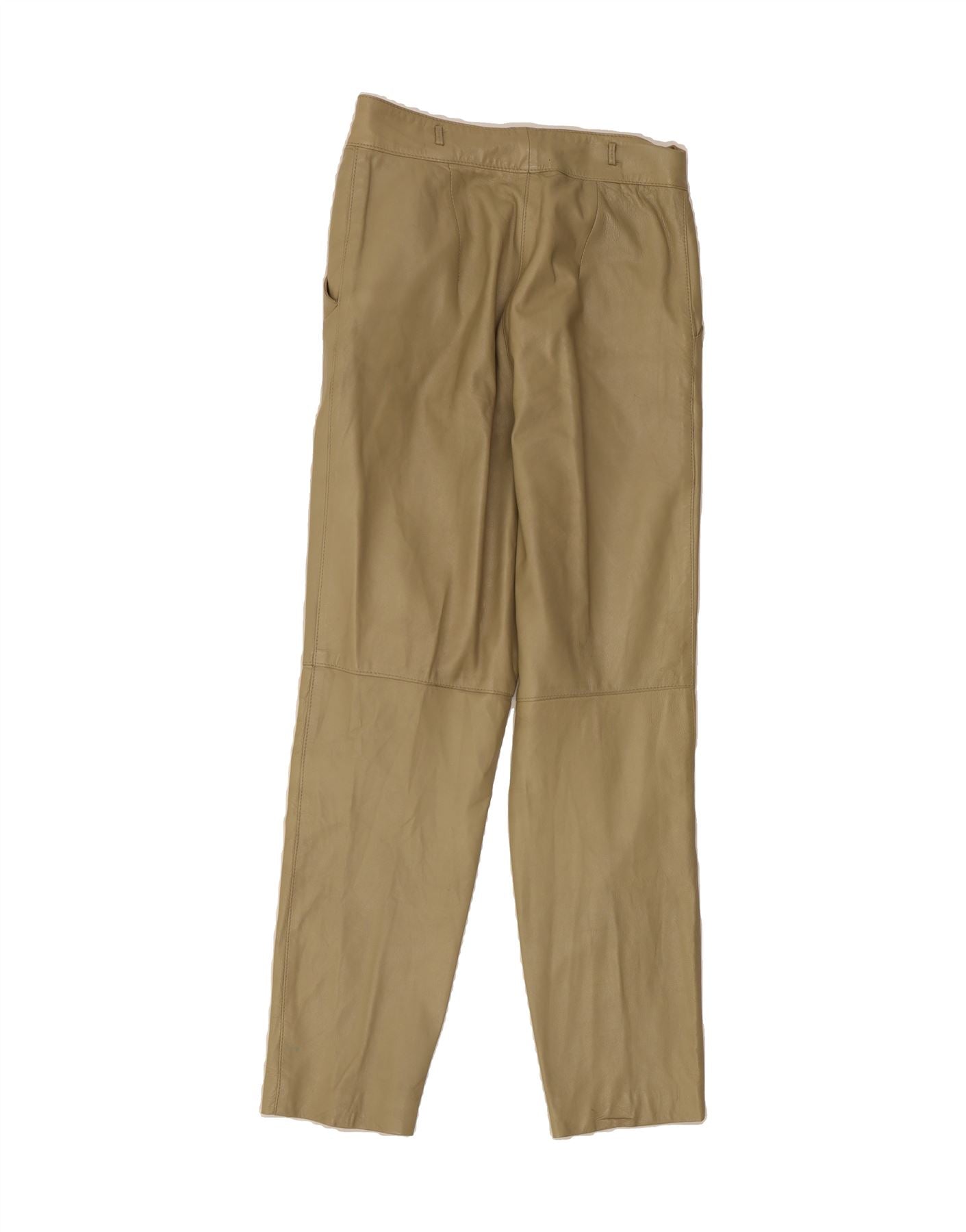 VINTAGE Womens Leather Casual Trousers IT 44 Medium W26 L27 Khaki Leather