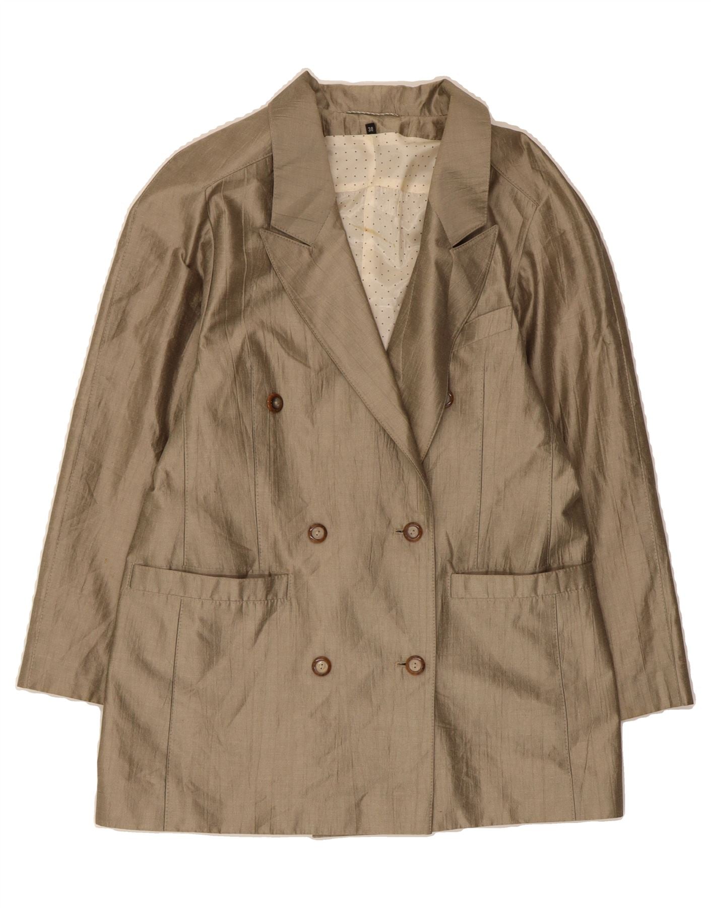 VINTAGE Womens Longline Double Breasted Blazer Jacket EU 38 Medium Grey