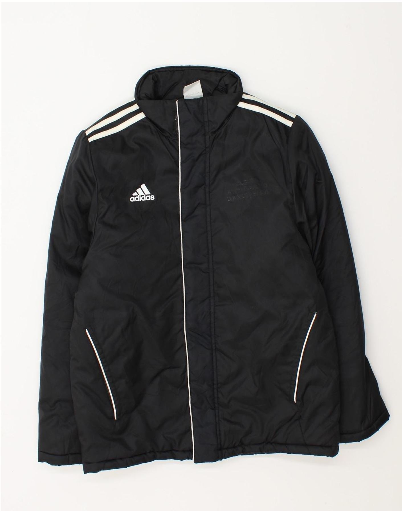ADIDAS Boys Graphic Padded Jacket 11-12 Years Black Polyester