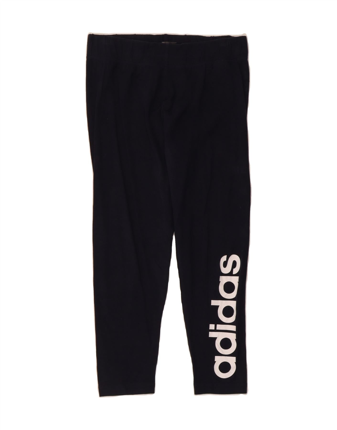 ADIDAS Womens Graphic Leggings UK 16/18 Large Navy Blue Cotton