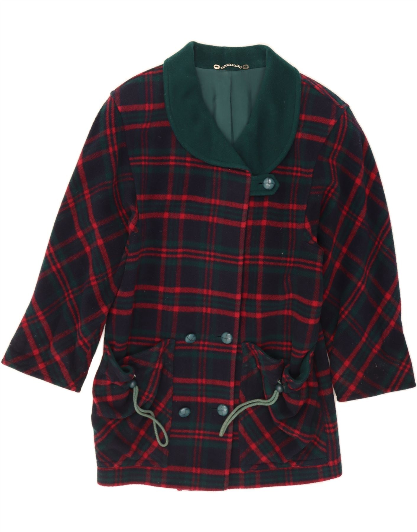 ADLER Womens Double Breasted Coat UK 14 Large Navy Blue Check Wool