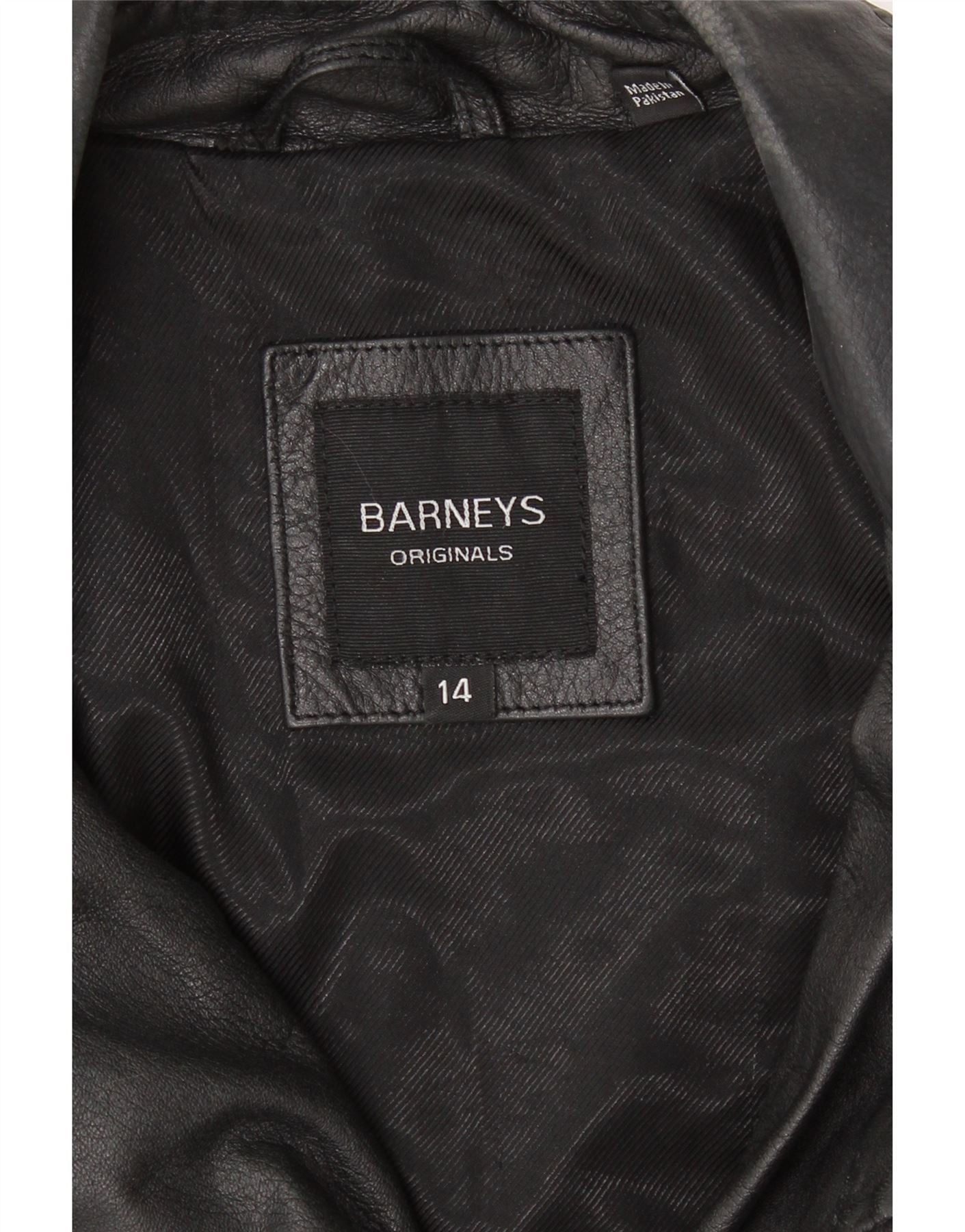 BARNEYS Womens Leather Biker Jacket UK 14 Medium Black Leather