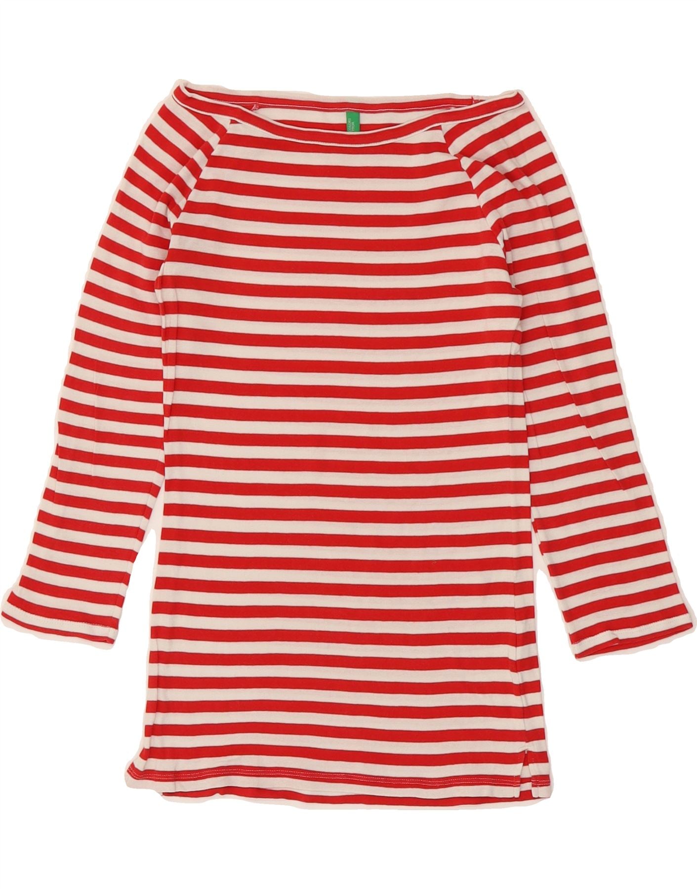 BENETTON Womens Off Shoulder Top 3/4 Sleeve UK 8 Small Red Striped Cotton