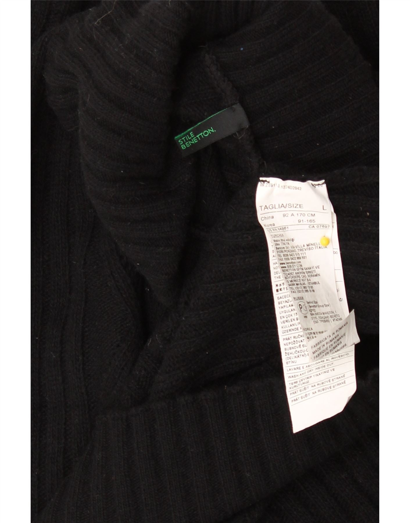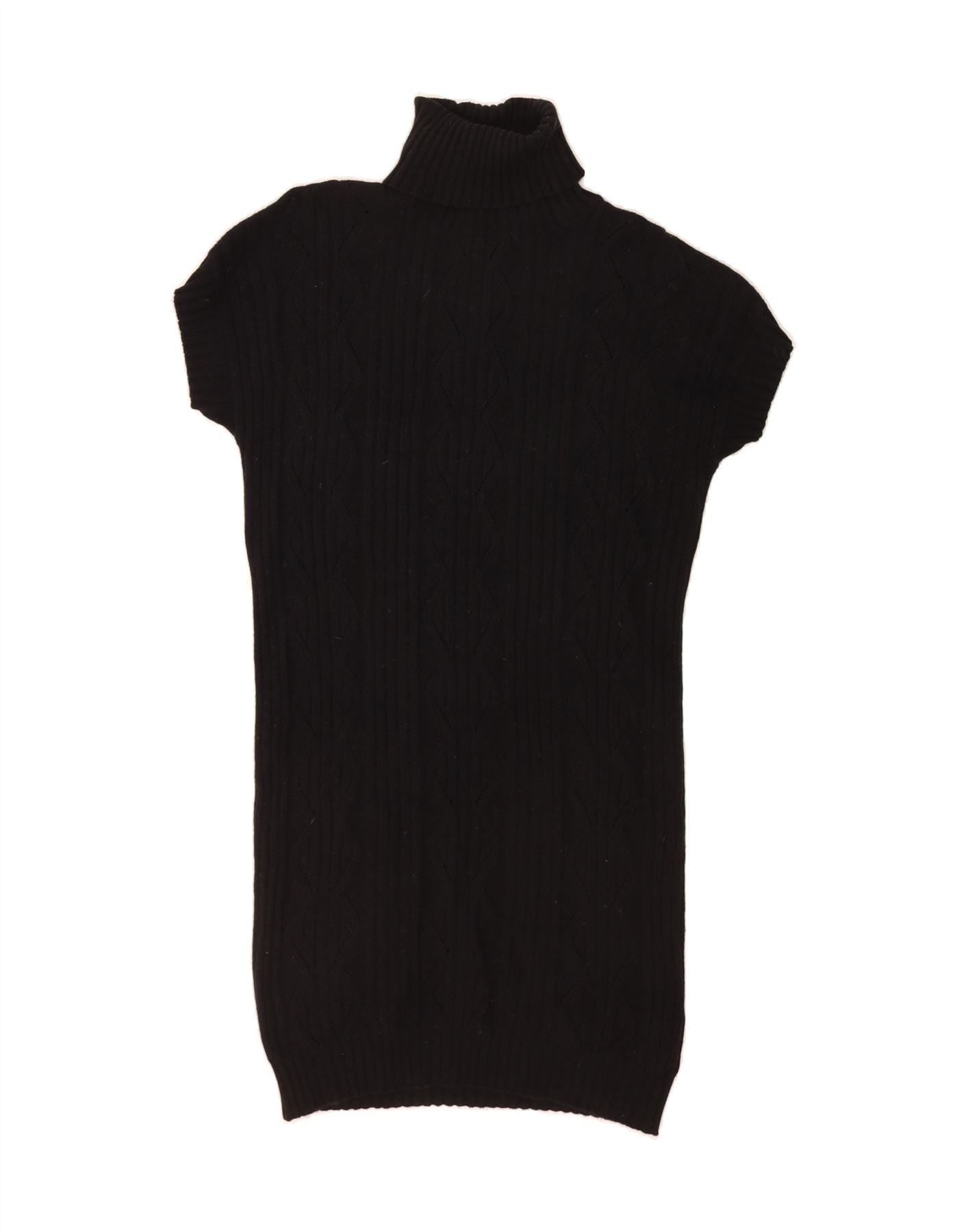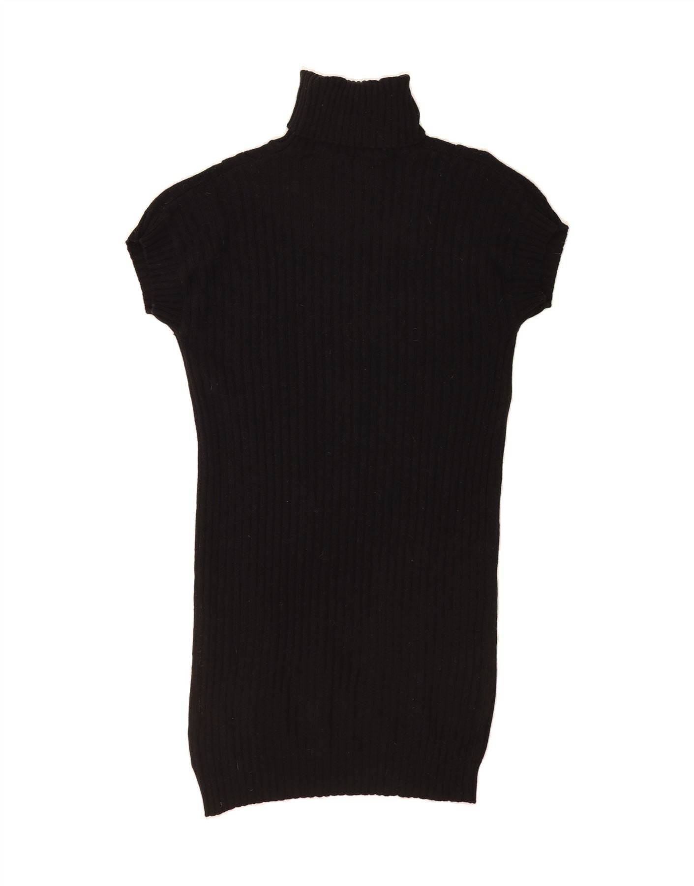 BENETTON Womens Short Sleeve Roll Neck Jumper Dress UK 16 Large Black Wool