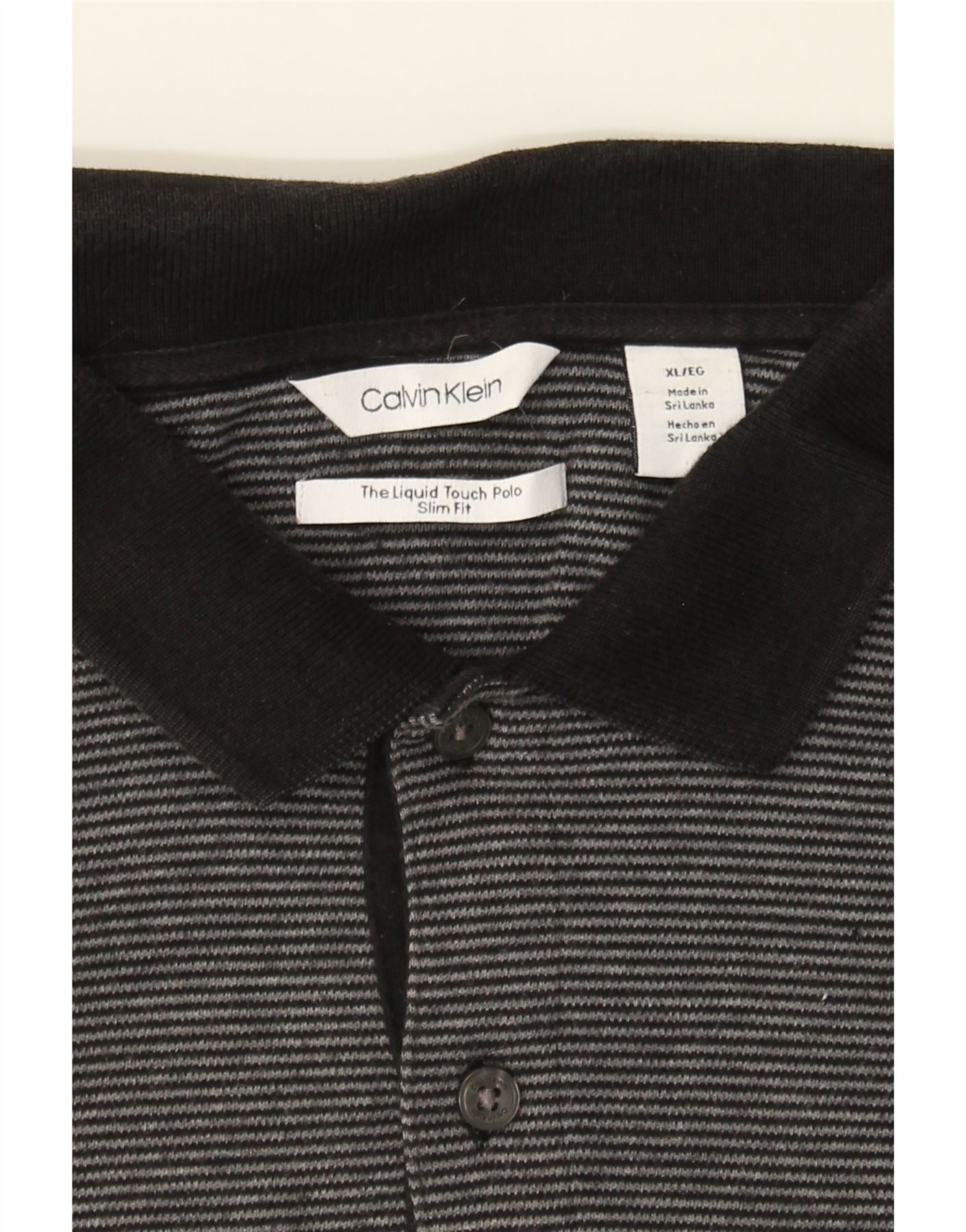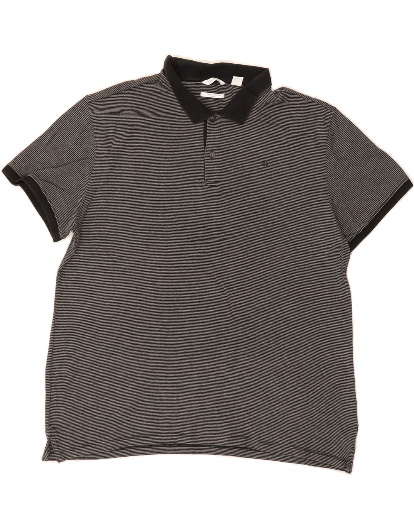 CALVIN KLEIN Mens Slim Fit Polo Shirt XL Grey Striped Cotton