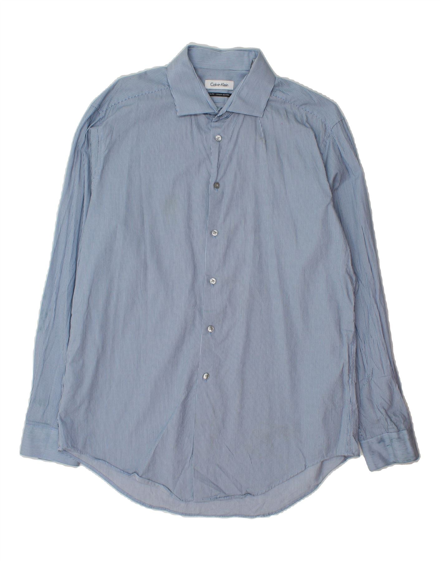 CALVIN KLEIN Mens Slim Fit Shirt Size 16 1/2 Large Blue Pinstripe Cotton