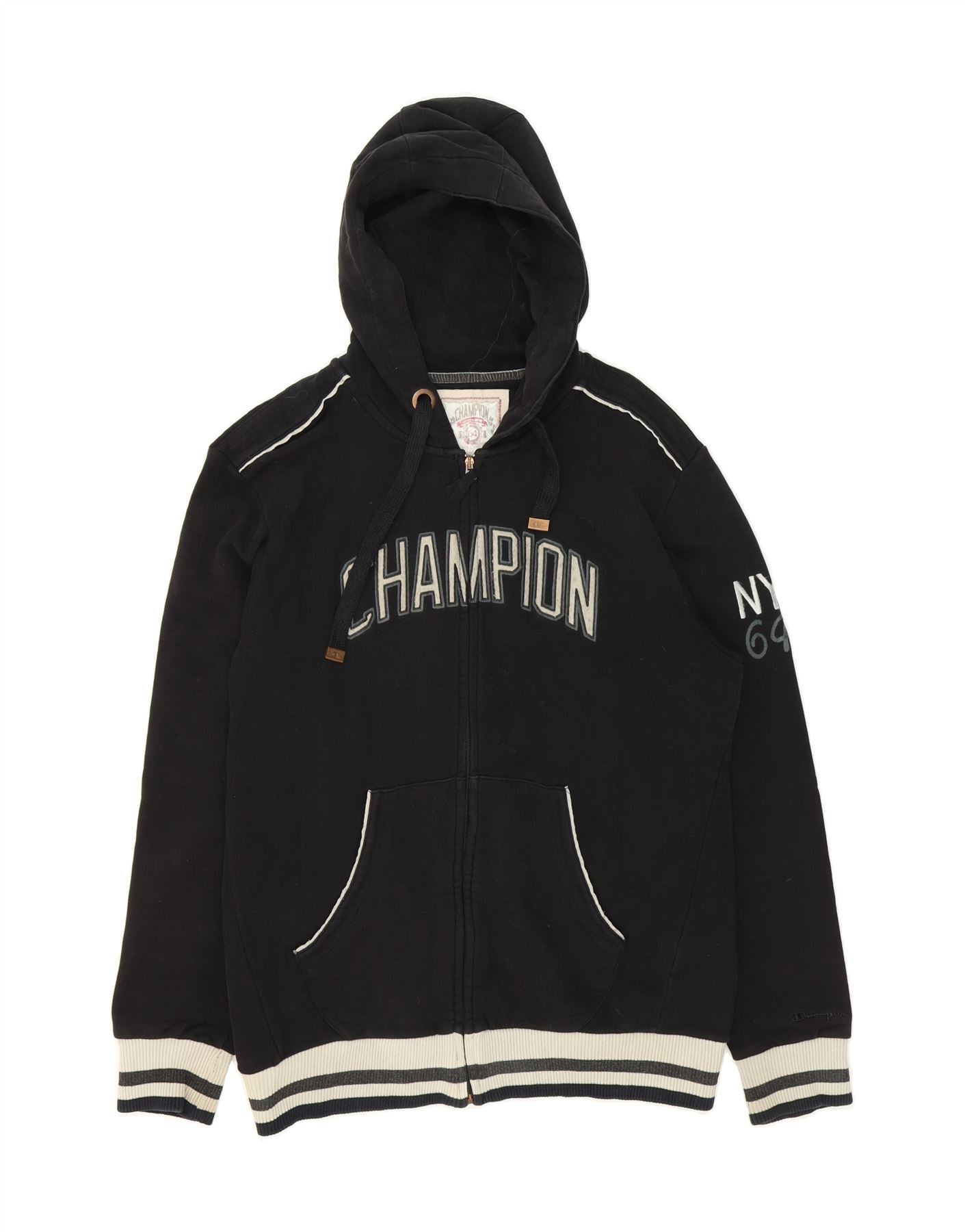 CHAMPION Womens Graphic Zip Hoodie Sweater UK 20 2XL Black Cotton