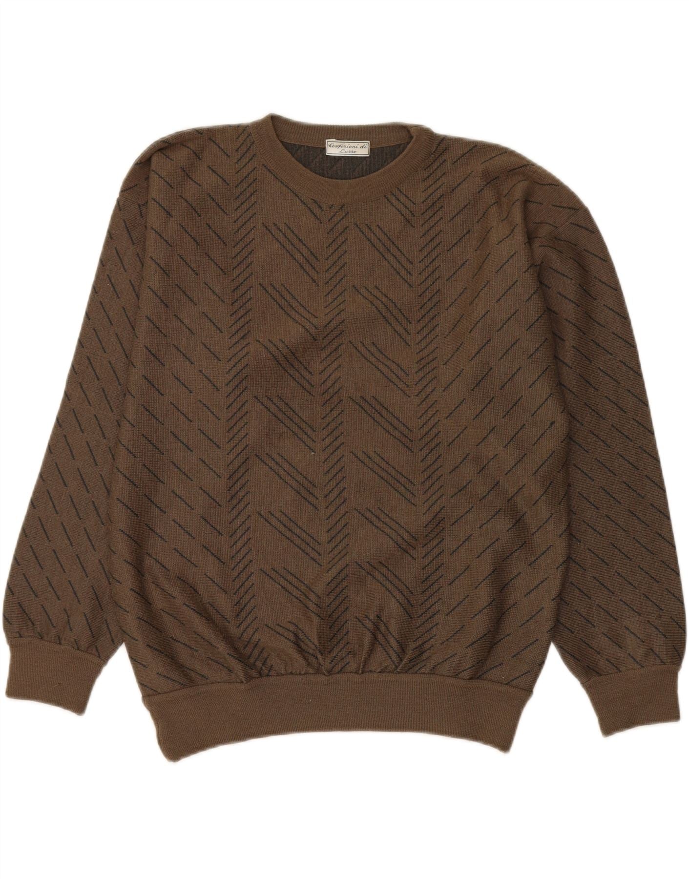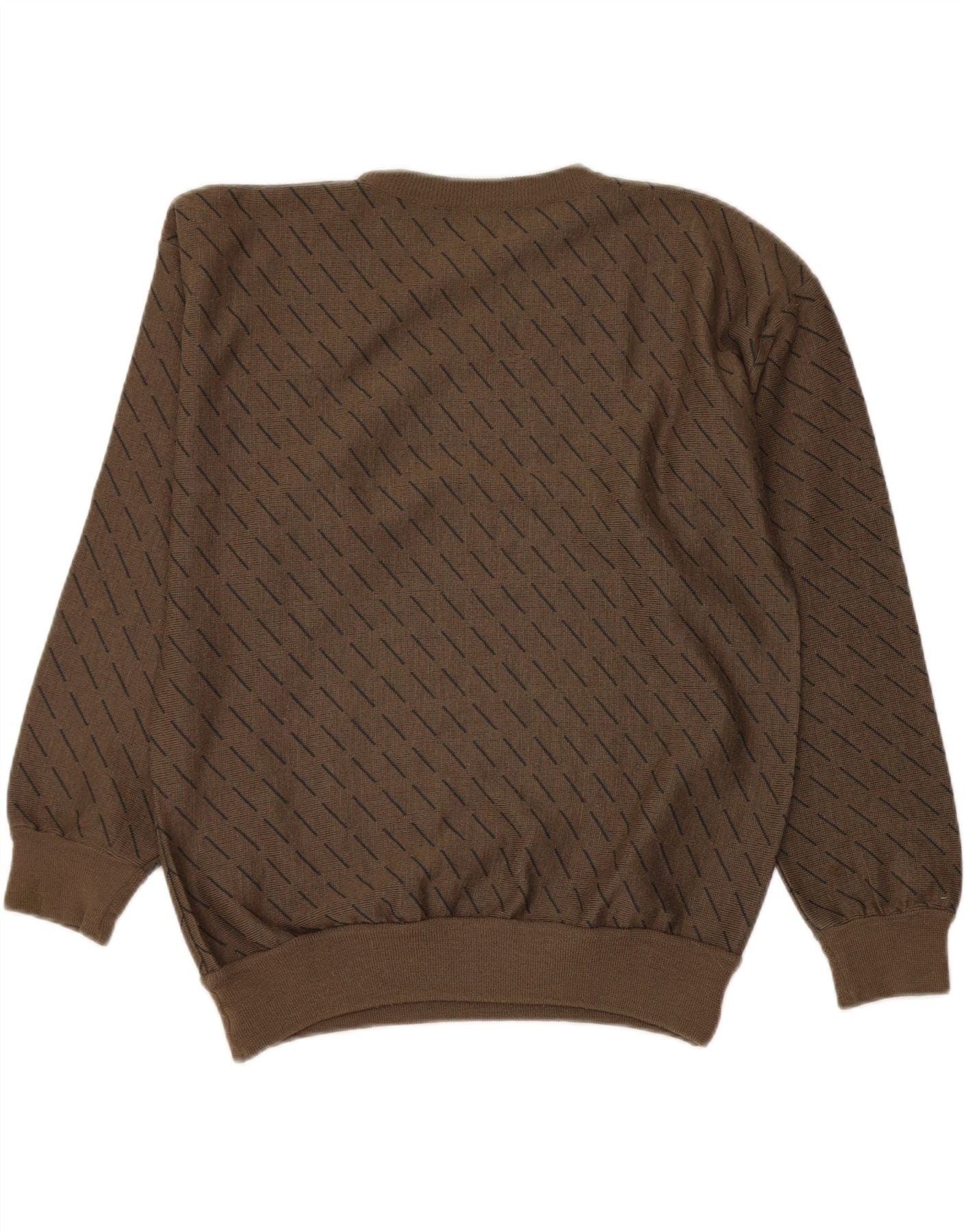 CONFEZIONI DI LUSSO Mens Crew Neck Jumper Sweater Medium Brown Striped