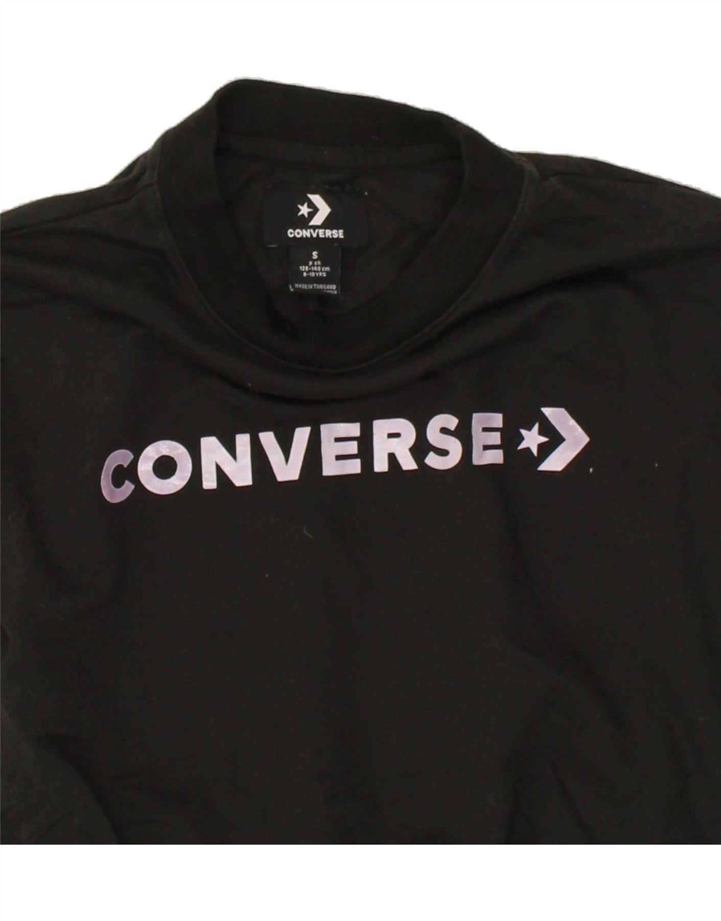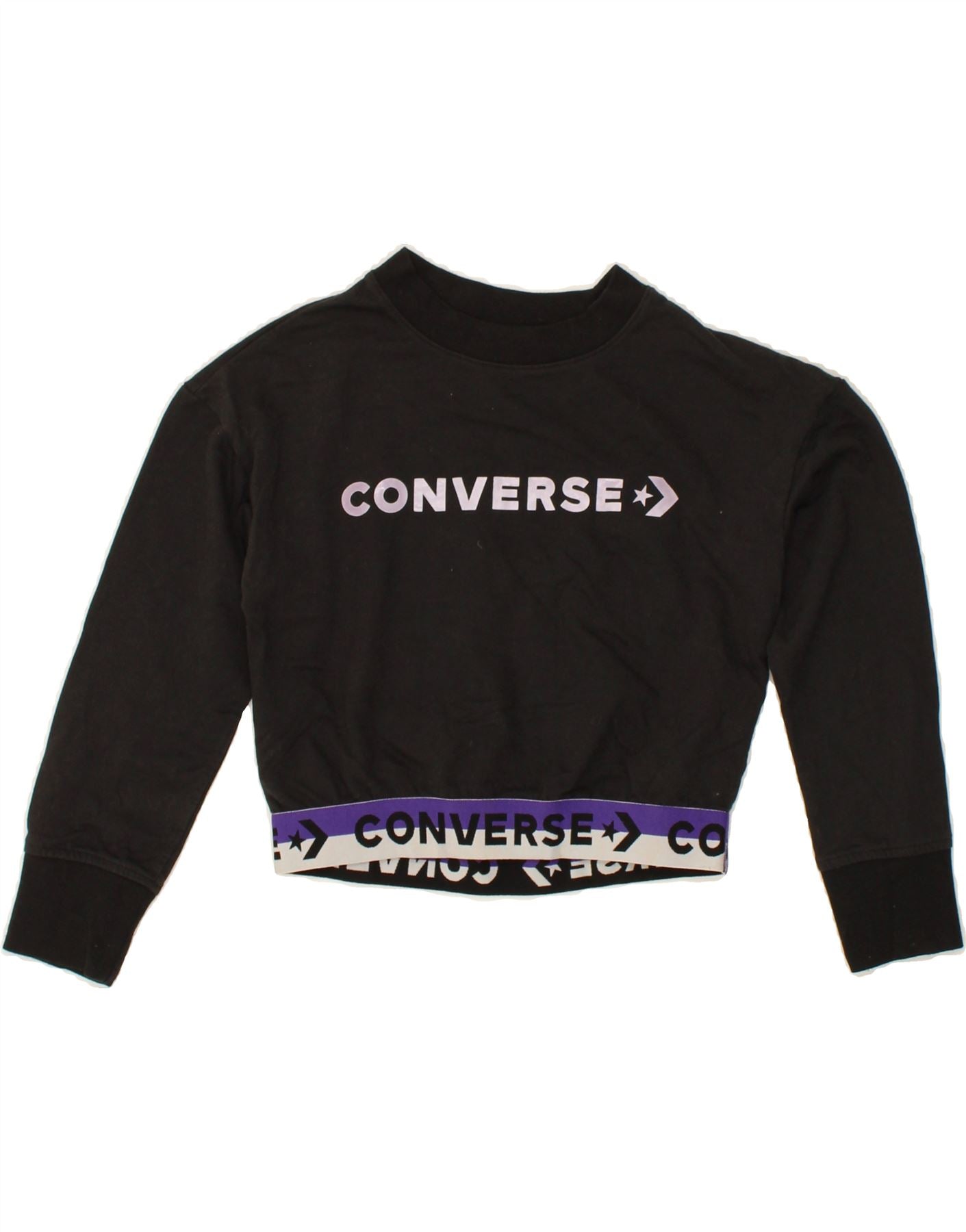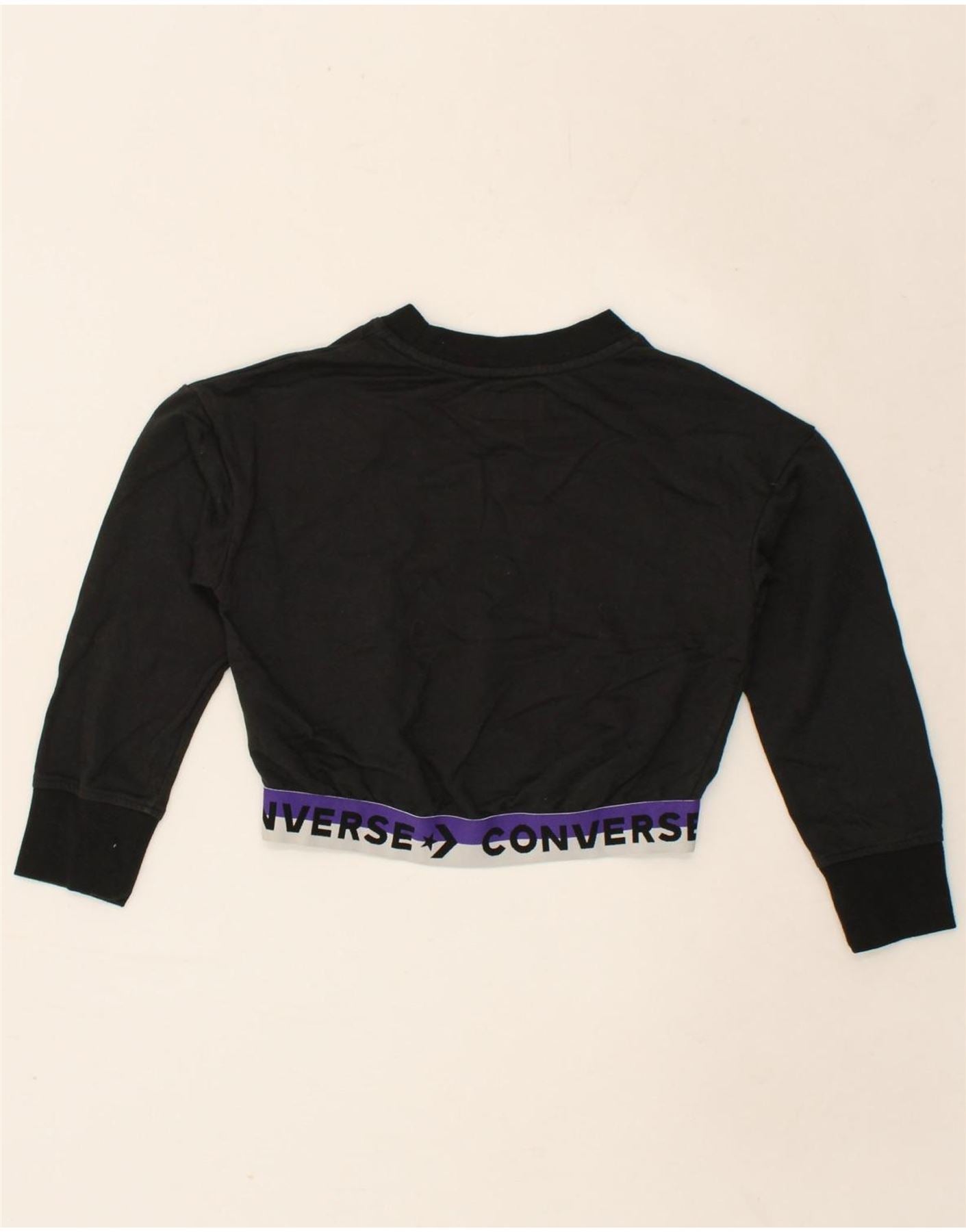 CONVERSE Girls Crop Graphic Sweatshirt Jumper 8-9 Years Small Black