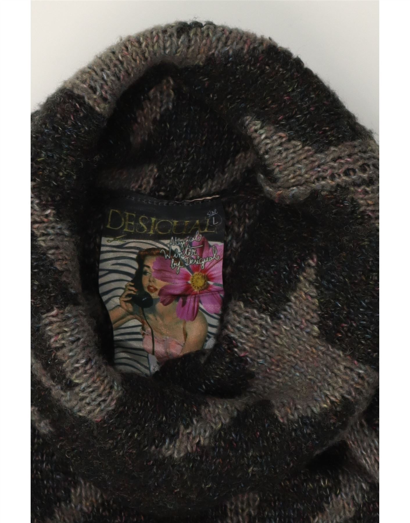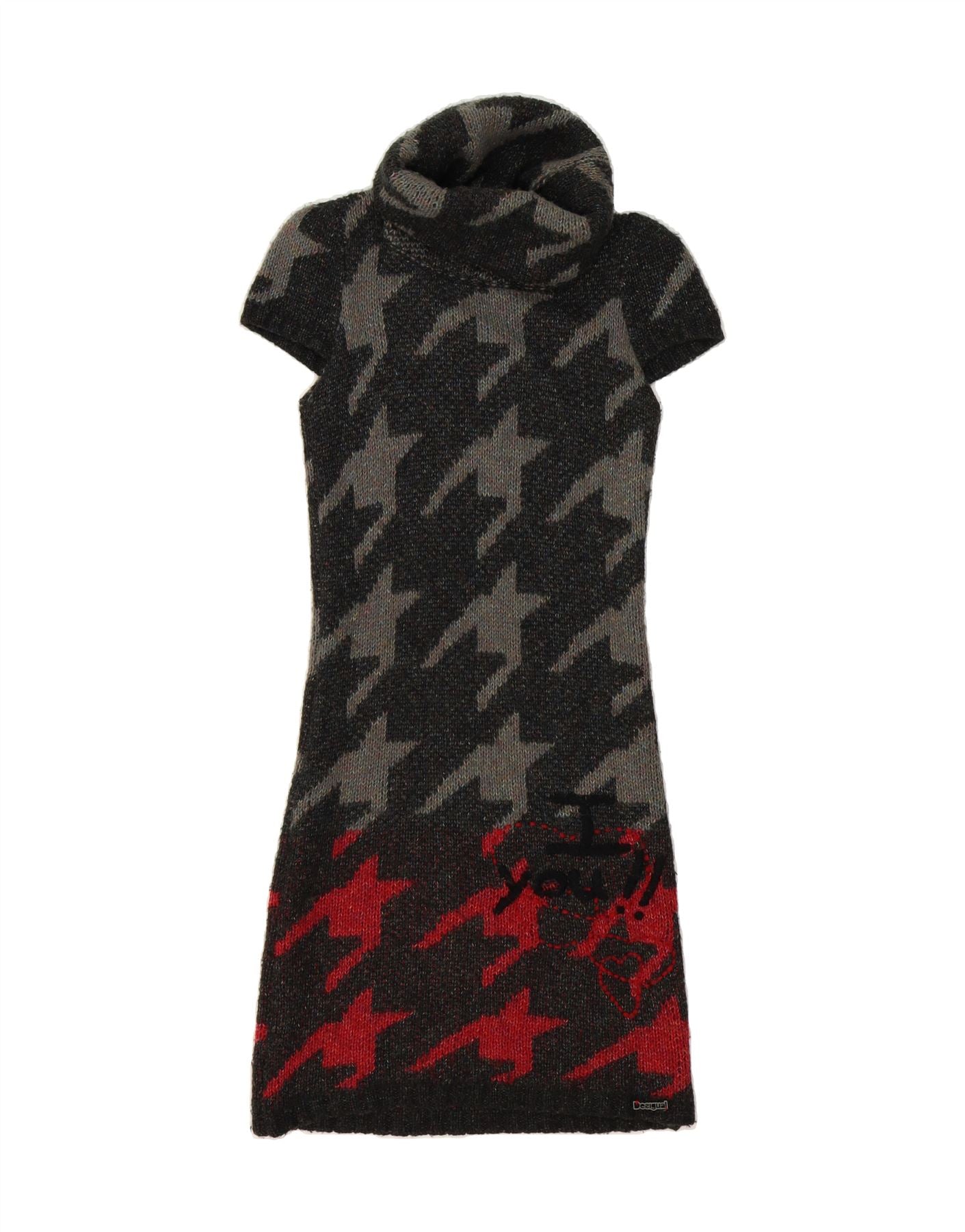 DESIGUAL Womens Short Sleeves Jumper Dress UK 16 Large Grey Houndstooth